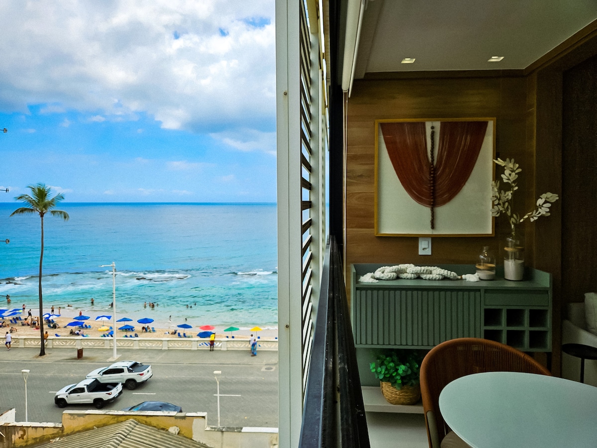 Apartamento moderno, com duas suítes e uma vista mar deslumbrante em todos os ambientes, cuidadosamente planejado para proporcionar conforto e sofisticação em uma localização privilegiada na Barra, um dos bairros mais desejados de Salvador. A apenas 30 metros da praia, situado no circuito do Carnaval, e a cerca de 100 metros do Farol da Barra! Aqui, você pode fazer tudo a pé: praias, cafeterias, restaurantes, mercados, farmácias e shopping.