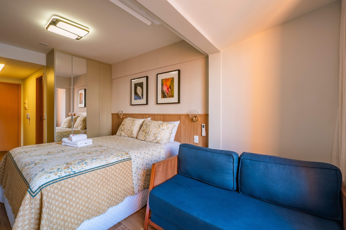 ** KÜLÖNLEGES FOGLALÁSI FELTÉTELEK ** Ezekben az időszakokban csak együtt lehet foglalni 2025-ben és 2026-ban: – Natal: 12.23-tól 12.26-ig – Réveillon: december 30-tól január 2-ig – Yemanjá: február 1-től 3-ig – Karnevál: február 12-től február 18-ig ------------------------ Kényelmes stúdió kiváló helyen a Rio Vermelho bohém negyedben, 100 méterre a Largo de Santanától (a híres Praça da Dinha) és a Rua da Paciência-tól, és tele bárokkal, éttermekkel, létesítményekkel és szabadidős lehetőségekkel a környéken. Üdv!