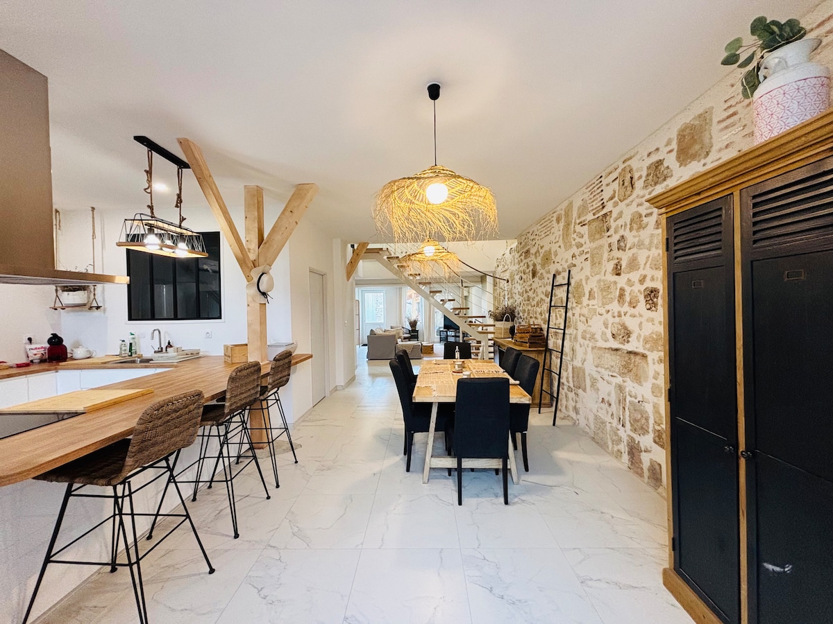 🌾A nyugalom gubója a vidék szívében🌾 Ezt a 320 m²-es házikót úgy tervezték, hogy ötvözze a kényelmet, a teret és a barátságosságot. 4 fő hálószobát, egy többágyas szobát, egy világos nappalit, egy nagy étkezőt és egy felszerelt konyhát tartalmaz. Beltéri medence, pezsgőfürdő kilátással, biliárd, bowlingpálya: minden megvan a pihenéshez és a jó időtöltéshez. Ideális családdal, barátokkal való tartózkodásra, vagy szemináriumok és elvonulások szervezésére békés környezetben.