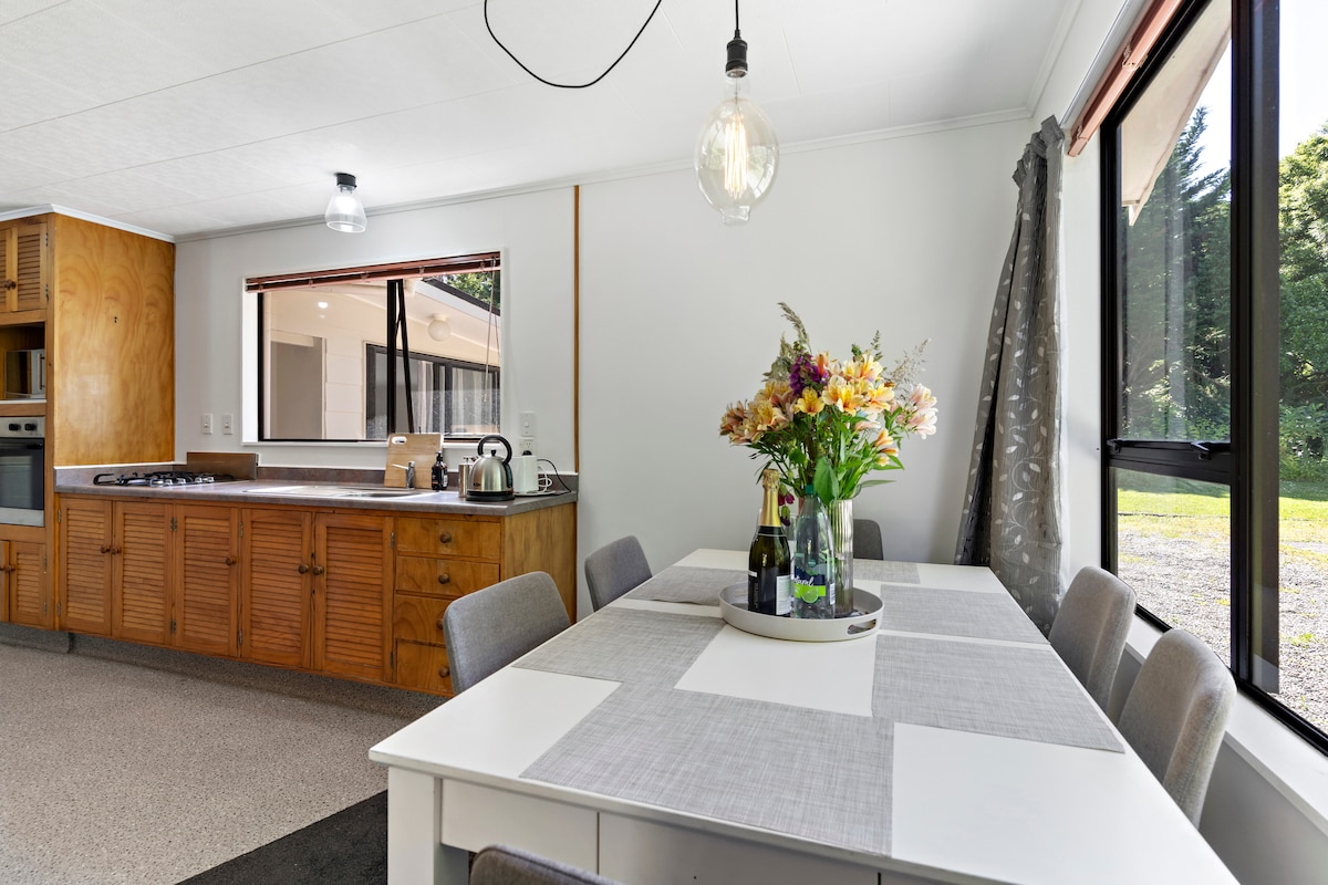 Csodálatos, környezetbarát, fűthető francia stílusú házikó, amely kőből és őshonos fából épült, festői kilátással a folyó völgyére és a hegyekre. Carterton, Greytown és Masterton közelében. Igyál tiszta artézi forrásvizet, miközben a bőséges madarakat hallgatod, és a verandán üldögélsz. Sétálj egyet a Nemzeti Parkban a folyó túloldalán, biciklizz, golfozz - vagy látogass el a szőlőültetvényekre és éttermekbe egy élénk időre. Ez egy kalandos menekülés, amely közel van a nyüzsgő Wairarapához, a „jó élethez”!