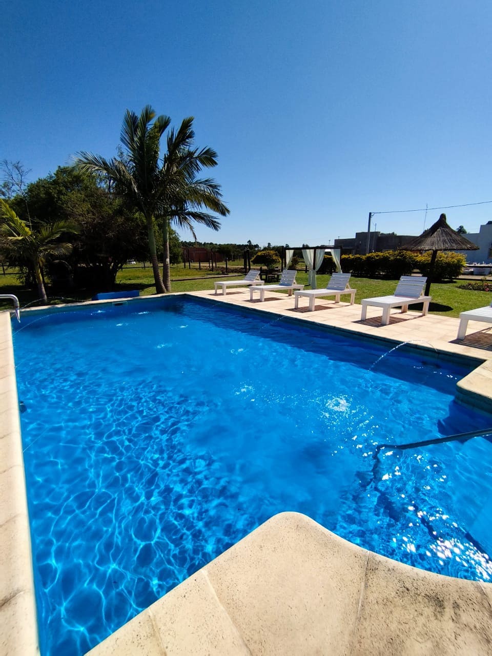 Es un lugar ideal para estar en contacto.con la naturaleza, en un ambiente familiar con piscina, sombrillas y reposeras en un parque bien verde y parrillas individuales