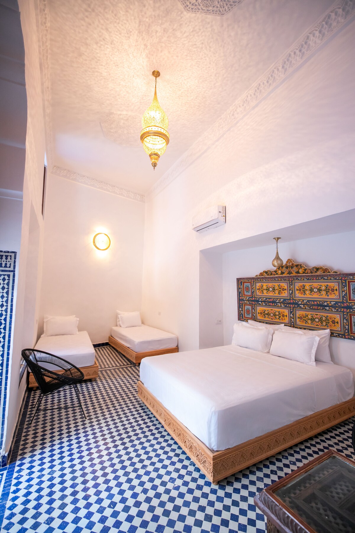 Masterfully blends timeless Moroccan style with modern design Located in the heart of the old Fez Medina. Offers an unparalleled experience. The expansive suite features a large bedroom, living room adorned with Moroccan mosaic private bathroom and air conditioning. Hand-picked furniture and exquisite fabrics create an atmosphere of elegance. Start your day with a delightful breakfast on your private terrace and enjoy ultimate peace and privacy. Experience the magic of Morocco like never before!