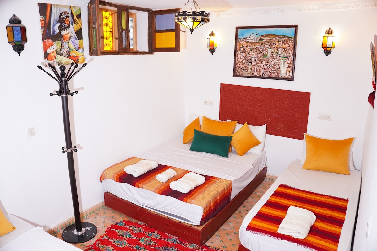 Élvezd a teljes házat egyetlen szoba áráért! Ez a tágas otthon Fez óvárosának szívében található, amely békés légkört és autentikus marokkói bájt kínál. Három hálószobával, négy kényelmes ággyal, teljesen felszerelt konyhával, valamint elegáns étkezővel és társalgóval rendelkezik. Egyedi szállás, amely ötvözi a kényelmet és a hagyományokat!
