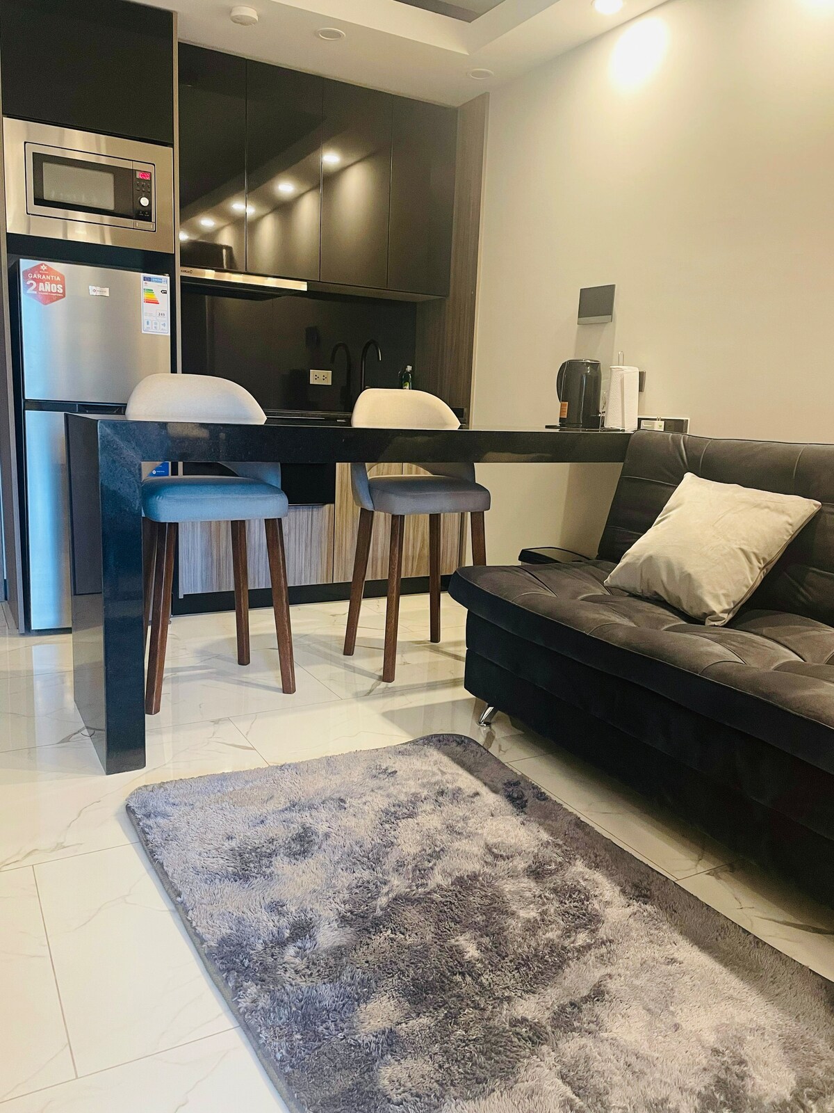 ✨ Elegáns lakás a nyüzsgő Equipetrol környéken, ideális üzleti vagy szabadidős célokra. Élvezd a modern dizájnt, a nagy sebességű Wi-Fi-t (293 Mbps), az okostévét és a légkondicionálót. Pihenj a tetőtéri medencében, ahonnan panorámás kilátás nyílik a városra. Tökéletes rövid vagy hosszú távú foglalásokhoz, és a kényelem és a biztonság ötvözésével felejthetetlen élményt nyújt.
