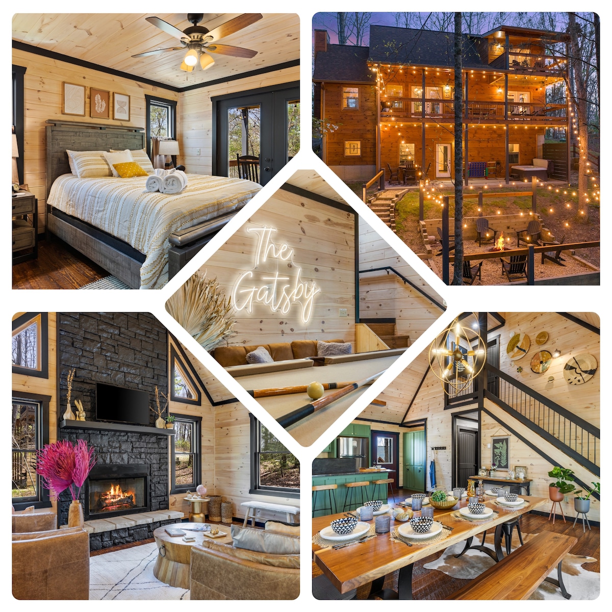 Welcome to The Gatsby!!! Our 2,700 sq. ft., 3 bedroom, 3.5 bath cabin is nestled in the breathtaking mountains of North Georgia. Our flat 6 car driveway with an Electric Vehicle charger can be hard to find in the area! With two master bedrooms and a bunk room, all on their OWN LEVEL of the cabin, it’s perfect for families or group getaways! All bookings come with a digital guest book full of our local recommendations while visiting. No pets allowed. Sleeps 9 adults comfortable.
