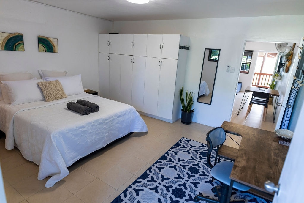 Egyike a két újonnan épült, önálló stúdióapartmannak, amely saját teakonyhával, erkélyrel, tévével stb. rendelkezik, hogy otthon érezze magát az otthonától távol. A First Landing üdülőhely mellett, a hoteltől és a strandtól sétatávolságra található apartman nagyszerű helyszín azoknak, akik szeretnék élvezni az idilli fidzsi életstílust, miközben az otthon néhány kényelmét is élvezik. A lakást vidék veszi körül, és távol esik a városi élet nyüzsgésétől!