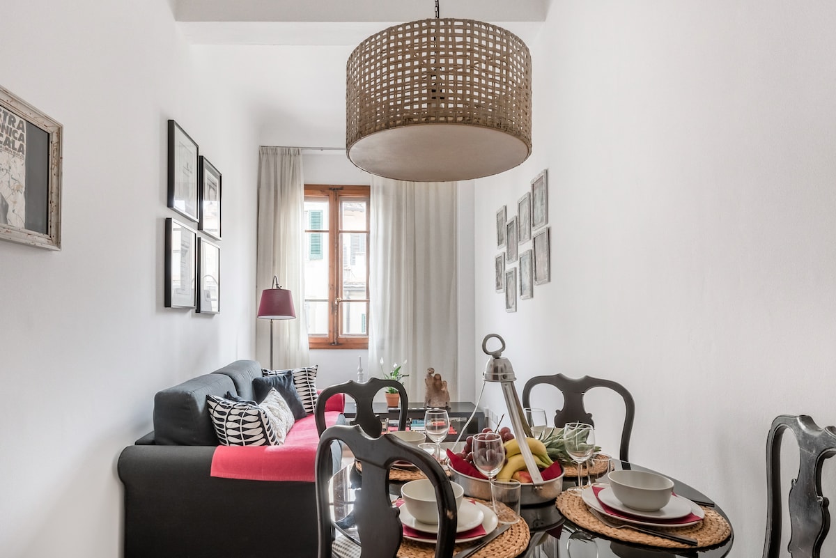 Splendido appartamento con ascensore, selezionato tra i migliori 10 Airbnb di Firenze! Situato in Piazza del Mercato Centrale, in zona pedonale ricca di ristoranti e negozi tipici, a pochi passi da tutti i principali monumenti. Dimentica traffico e mezzi pubblici: potrai visitare l’intera città comodamente a piedi, vivendo la sua magia senza stress! A soli 5 minuti dalla Stazione SMN e dalla tramvia per l’aeroporto. Il luogo perfetto per sentirsi a casa nel cuore di Firenze!