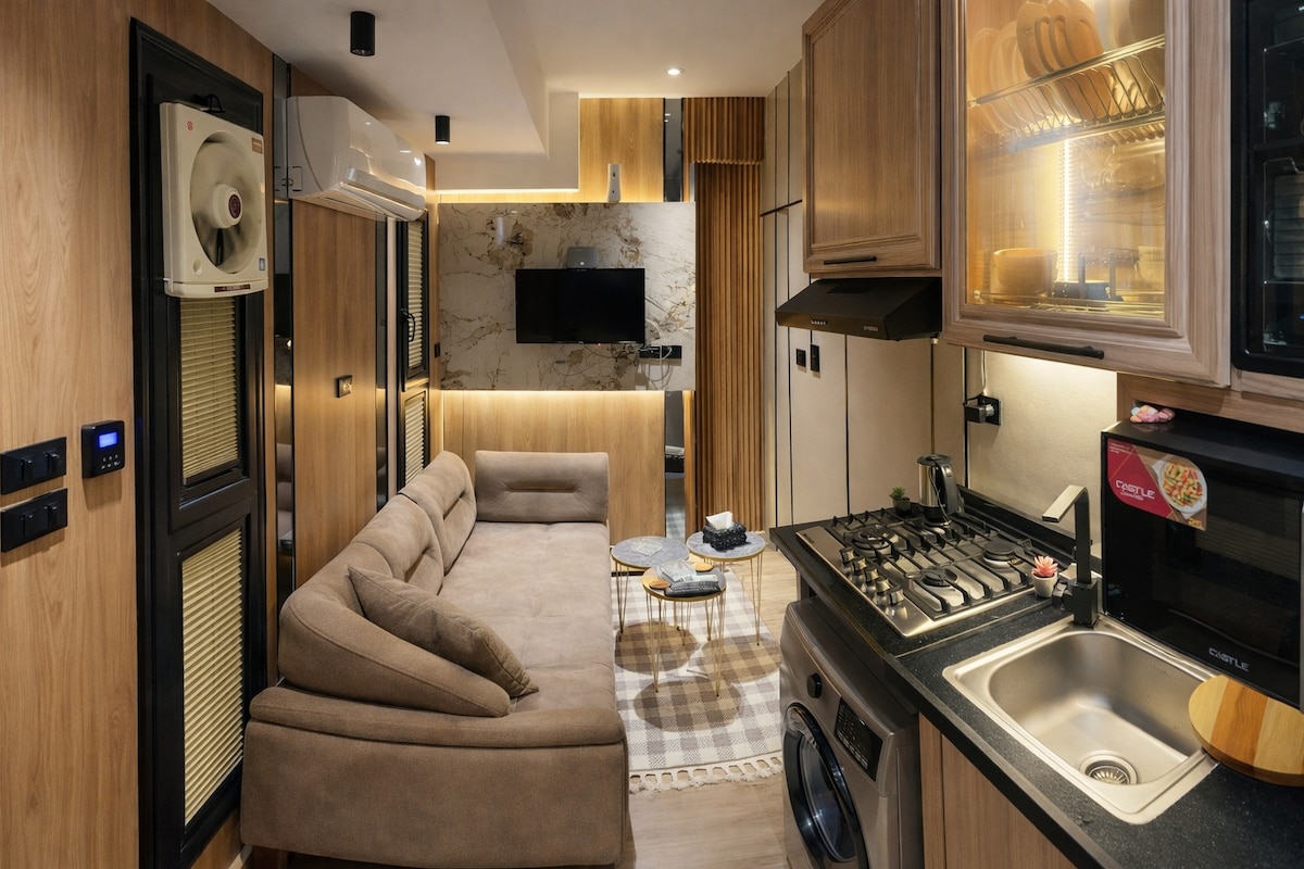 Modern stúdió az El Motamyez negyedben, október 6-án, saját tetőterasszal. A lakás a harmadik emeleten található, lifttel. Ideális egyedül utazóknak vagy pároknak. King méretű ágy, saját fürdőszoba, kávészarok, okostévé, nagy sebességű Wi-Fi és gyönyörű tetőtéri társalgó – tökéletes munkához, pihenéshez vagy a naplemente élvezetéhez. - 3. emelet lifttel - A Mall of Egypt és a Mall of Arabia 10 percre található Több egység is elérhető ugyanabban az épületben csoportok számára.