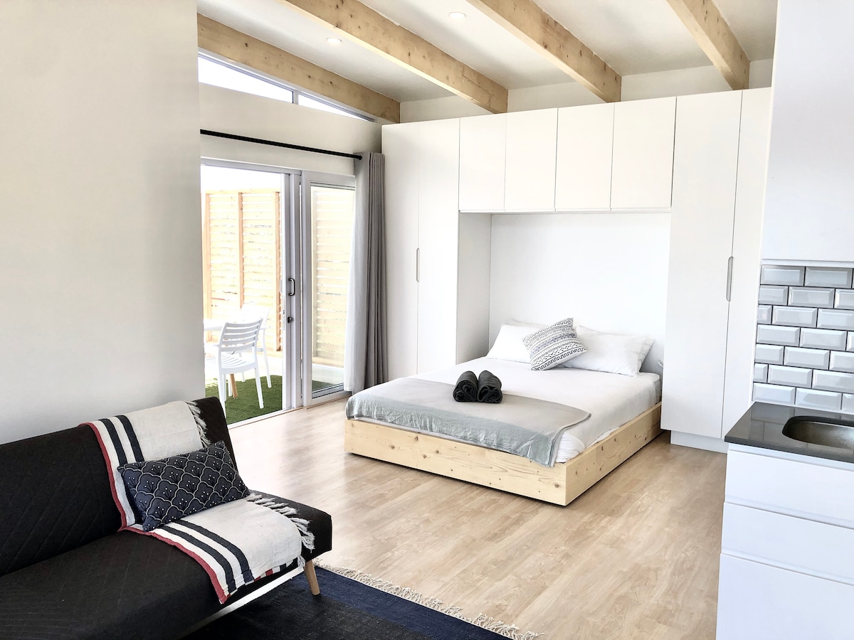 Stúdió apartmanunk egy 40 négyzetméteres erkélyre nyílik, ahonnan panorámakilátás nyílik a Hout Bay Valley-re és a Helderberg hegyekre. A nagy tolóajtók eltűnnek a falakban, akadálytalan beltéri/kültéri áramlást biztosítva, miközben a megemelt pozíció védi a magánéletet. A nyitott alaprajzú fürdőszoba egy zárt, titkos kertre néz, amely keret nélküli üvegzuhanyt is tartalmaz. Az egység teljesen felszerelt teakonyhával rendelkezik, és minden nap kiszolgálják, kivéve a hétvégéket és a munkaszüneti napokat.