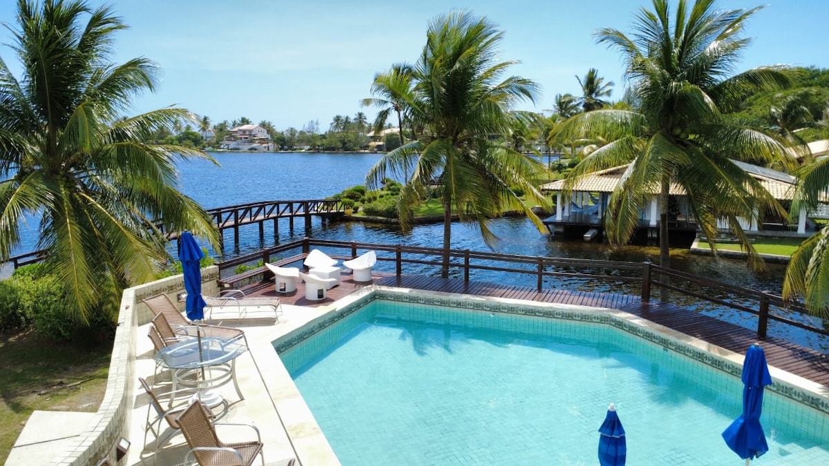 Casa luxuosa em Busca Vida, Camaçari, Bahia. Busca Vida é um dos condomínios mais seletos da região metropolitana de Salvador, um paraíso de natureza com kilométros de praias quase privativas. Busca Vida é uma das áreas mais bem preservadas do litoral de Salvador. A casa pertence ao um designer brasileiro renomado que mora nos Estados Unidos, e foi projetada por Lais Galvão e ele. A casa luxuosa com móveis de ícones do design mobiliário brasileiro, incluindo peças do Sergio Rodrigues.