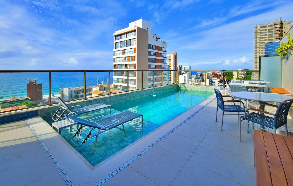 Vista-mar 450 m da Praia Farol da Barra c/ Piscina