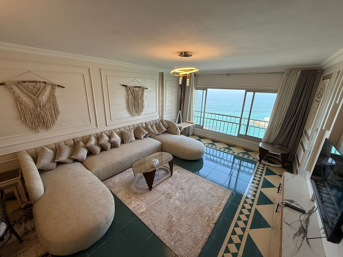 🏖️ Luxus tengerparti lakás az alexandriai Gleamben | Felejthetetlen kiruccanás! ✔️ Panorámás kilátás a tengerre: Ébredj hullámokra és lélegzetelállító kilátásra! ✔️ Elegáns dizájn: légkondicionáló/fűtés hangulatos hálószobákban, stílusos nappali, modern konyha . ✔️ Endless Entertainment: 55" Smart TV Netflix & Shahid VIP + nagysebességű Wi-Fi-vel. ✔️ Biztonság: éjjel-nappal , liftek. 📍 Elsődleges elhelyezkedés: Lépcsők a parttól 🌊 – ússz vagy sétálj napnyugtakor! Gleam legjobb éttermei/kávézói ☕ Alexandria nevezetességei és bevásárlási lehetőségei közelében.ه