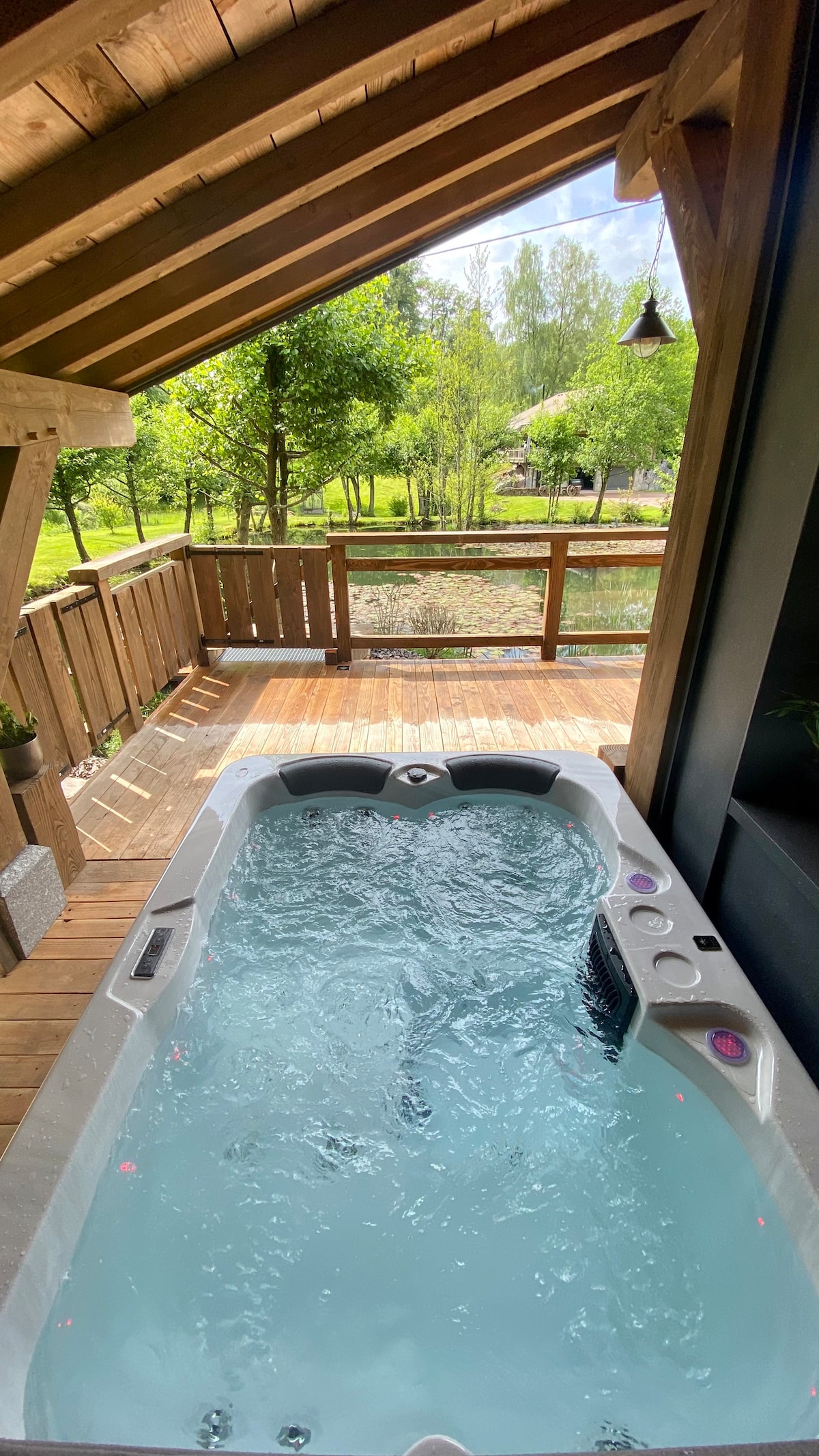 4 csillagos faház csak neked, egész évben 28 °C-ra fűtött fedett medencével Spa részleg saját jakuzzival + infraszaunával A teljes infrastruktúra kizárólag neked van fenntartva, nincsenek más nyaralók vagy tulajdonosok a faházban A faház szomszédok nélkül, elszigetelten áll az erdő szívében Faszénes grill, nagy felszerelt terasz, privát park juhokkal, óriás sakktábla és slackline a szabadtéri szórakozáshoz A víkendházat Sébastien hozta létre, a nagy munkától a bútorokig