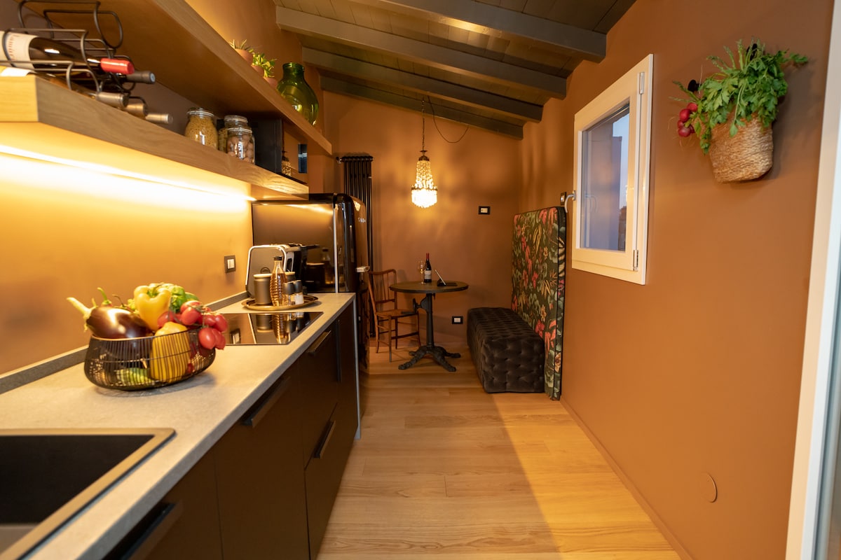 Si tratta di un moderno loft, nel cuore di una villa dei primi del Novecento. È stato appena restaurato e arricchito dalla presenza di mobili antichi. La zona giorno a piano terra con il divano letto e il camino funzionante; la zona notte si trova al piano di sopra, arricchita dall’utilizzo di un pavimento in castagno dell’Etna. Ampio antibagno con armadi su misura a scomparsa, moderno bagno con doccia extralarge. Spazi esterni ampi, giardino e piscina.