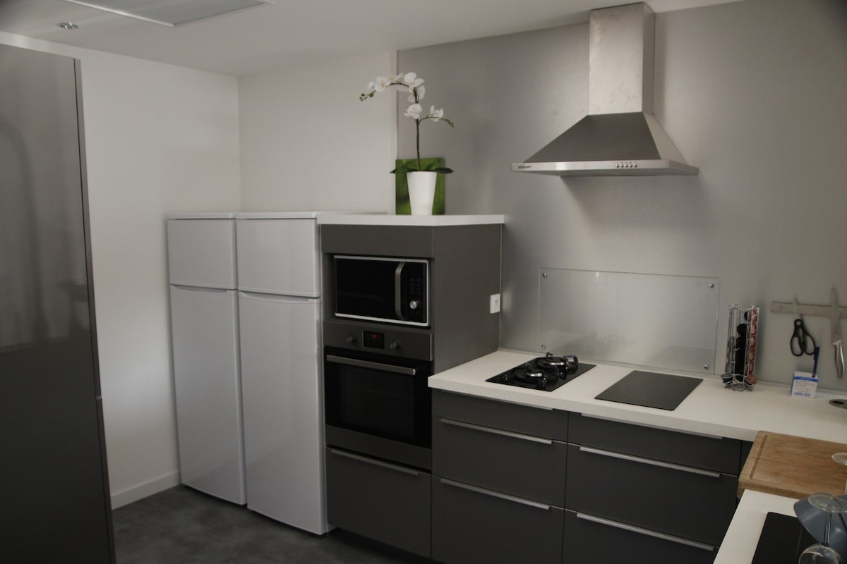 5 percre Poitiers központjától, egy csendes környéken található, ez a 2 fős apartman ideális egy pihentető tartózkodáshoz. Nappali tévével és Netflix-szel, asztal emelt asztallappal, felszerelt konyha, fürdőszoba zuhanyzóval. Ennek a bájos lakásnak a látványa nélküli privát kert, az elegáns kerti bútorok és a kültéri zuhanyzós fűtött jacuzzi nagyszerű eszközei. Függetlenül attól, hogy egy párról vagy barátokról van szó, felfedezheted Poitiers környékét.