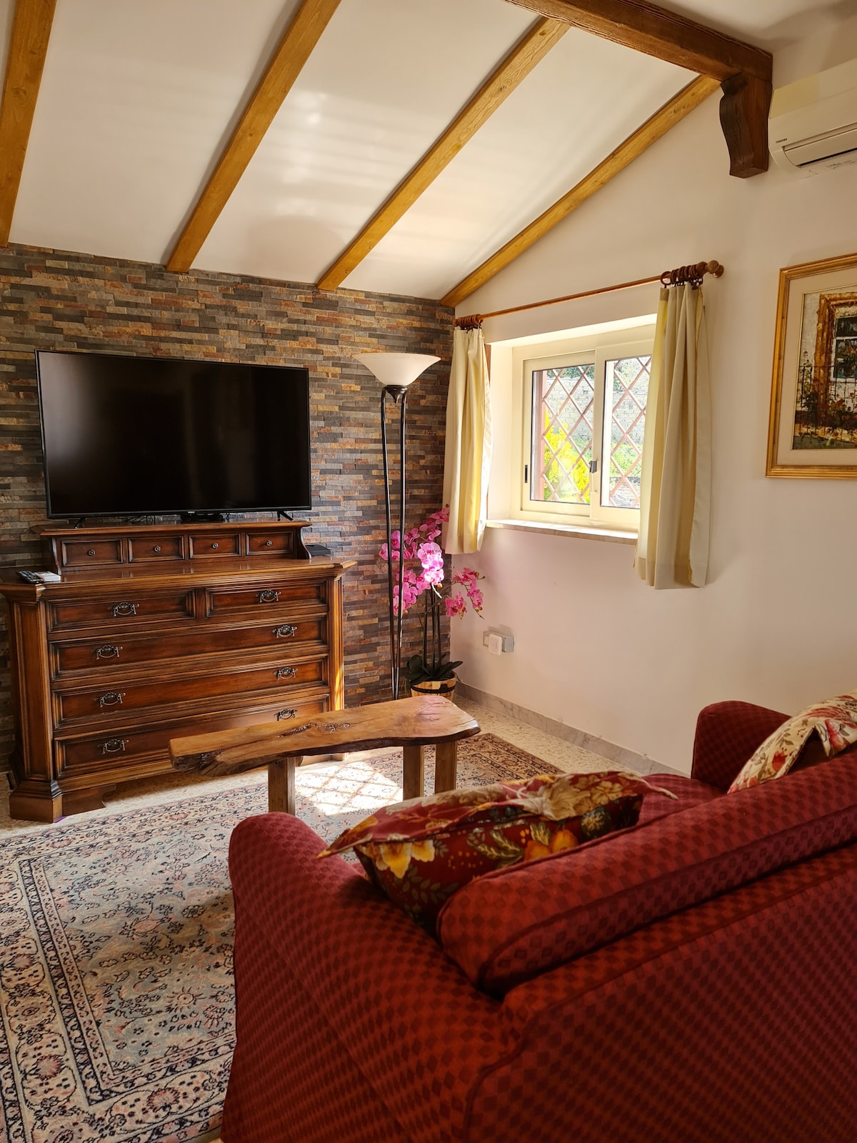 Fényes és kényelmes apartman egy villában, mindössze 30 percre Rómától, egy dombos lakónegyedben, kilátással a környező vidékre.Az apartman a földszinten egy Villa független bejárattal, belső parkolóval és nagy kerttel; befogadóképessége maximum négy fő, hálószoba, fürdőszoba, konyhasarok felszerelt edények, hűtőszekrény, sütő,mikrohullámú sütő és nappali wifivel, TV, két dönthető szék, egy nagy étkezőasztal és egy kétszemélyes kanapé.