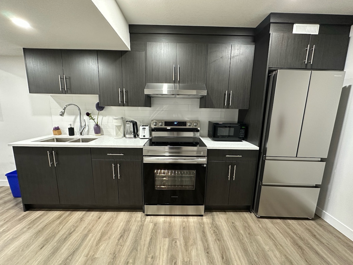 Ez a modern, 2 hálószobás lakás nagyszerű lehetőség üzleti utazáshoz vagy szórakozáshoz. Néhány perc autóútra vagyunk a South Health Campustól, a Real Canadian Superstore-tól és a világ legnagyobb Ymca épületétől. A következőket biztosítjuk: ✓ Kávé és tea ✓ Wi-Fi ✓ Parkolás ✓ Minőségi piperecikkek és szappanok ✓ 65" QLED Smart TV: Amazon Prime, Netflix és egyebek ✓ Víz és italok Egyéb szolgáltatások: Önálló ✓ bejutás ✓ Kényelmes ágyak és párnák ✓ Meleg paplanok ✓ Mosógép és szárítógép ✓ Vasaló ✓ Kenyérpirító ✓ Hajszárító ✓ Mikrohullámú sütő