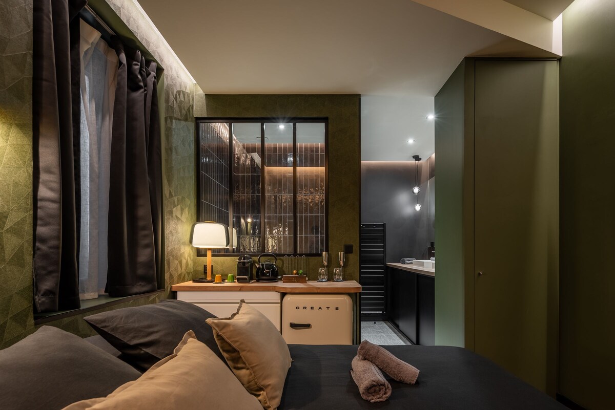 Sur les Quais côté Cour (calme). Parfait pour une escapade romantique. • Lit king size 180x200 • Baignoire balnéo • Télévision grand écran • Réfrigérateur • Machine Nespresso, dosettes et thé • Linge de lit et serviettes fournis • Sèche cheveux, savon, gel douche, shampoing • Boulangerie proche • à 10 min de la gare à pied, à 5 min de l'hypercentre à pied, accès autoroute immédiat • non fumeur • Ce logement privatif n’est pas équipé d’une cuisine (format chambre d’hôtel)