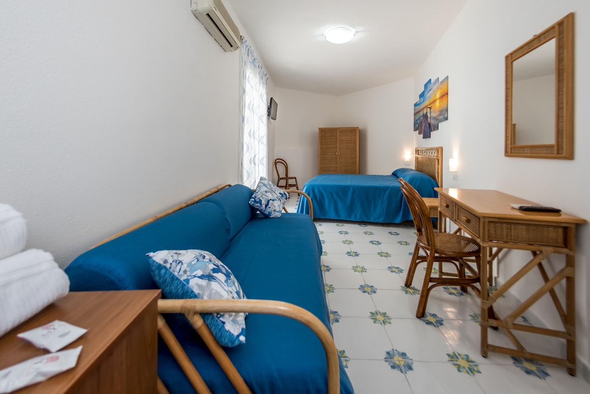Szoba légkondicionálóval, mennyezeti ventilátorral, hűtőszekrénnyel, TV-vel, fürdőszobával, erkéllyel és terasszal, 2 székkel és egy kis asztallal. Ingyenes: privát strand + termálmedencék + jacuzzi + törökfürdő + privát parkoló.