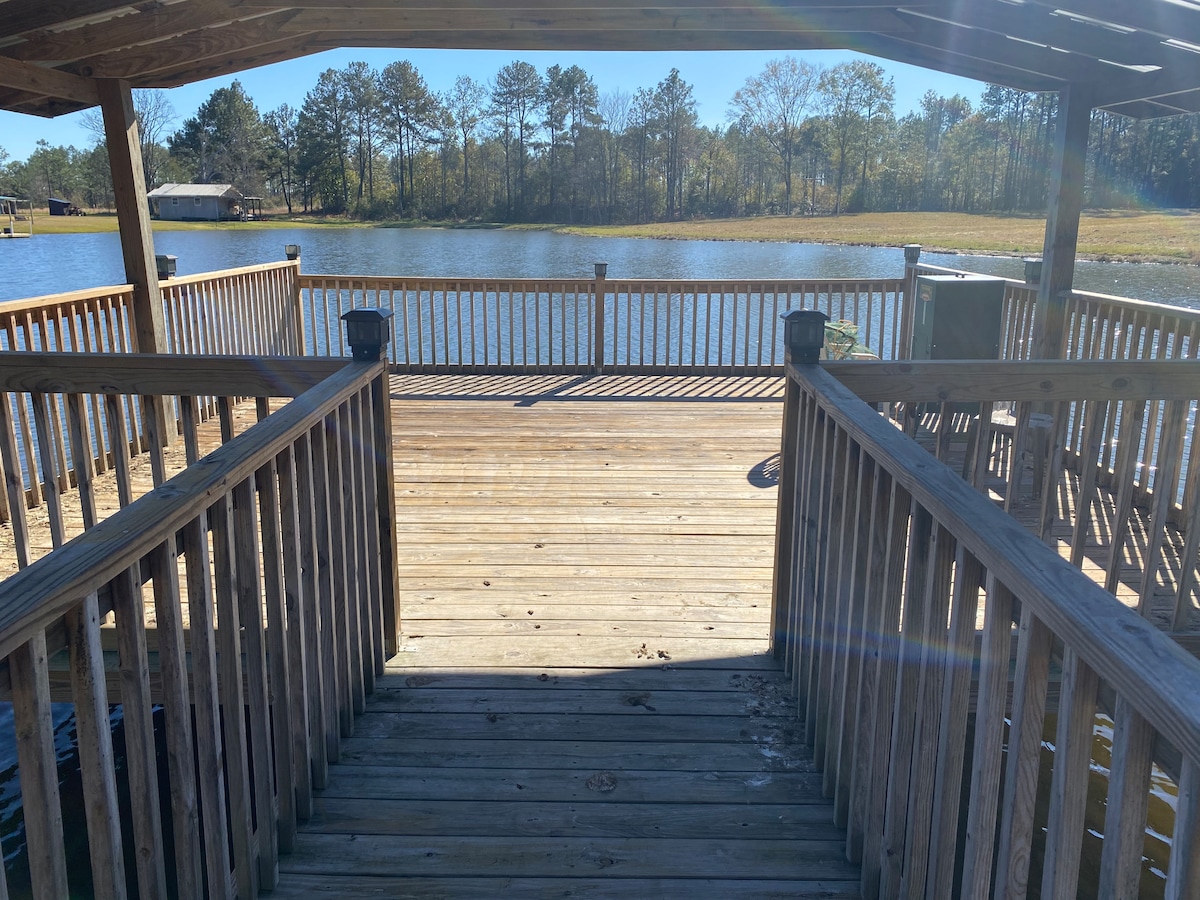 Élet egy privát tavon a város közelében, de a saját csendes világában ! Vadonatúj építésű, a kikapcsolódáshoz és a szórakozáshoz szükséges összes kényelmi szolgáltatás. Gyönyörű kilátás, Mega bútorozott terasz, Napozó /Horgászmóló, Hinták mindenkinek a tó partján ! Tűzrakóhely/gázgrill. Rengeteg kacsa és liba. EZ A KÜLTÉR! Teljes felszereltségű konyha, feltöltött kávéfelszerelés, jégkészítő, 3 privát hálószoba, 3 franciaágy, 2 teljes fürdőszoba, kandalló, hatalmas, nagy képernyős TV, irodaterület, snackbár, vadonatúj mosógép/szárítógép NÉZD MEG AZ ÖSSZES KÉPET.