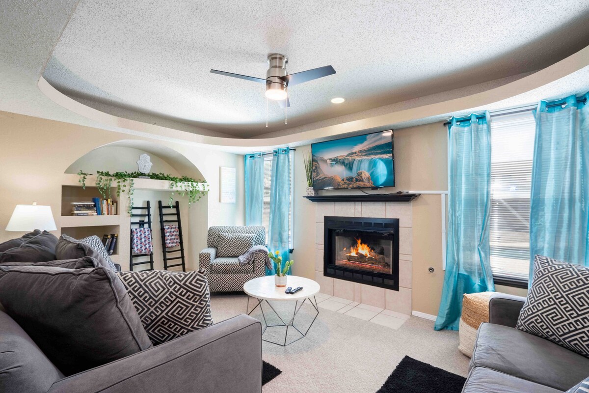 Welcome to our charming 3-bedroom, 2.5-bath corner house in East El Paso, a haven for relaxation and adventure! Dive into our private pool, challenge friends to air hockey or basketball indoors and outdoors! Experience comfort on a king mattress in the master bedroom or a queen Tempur-Pedic mattress. Relax with your guest in front of the fireplace and a movie for cozy evenings! The master bedroom's patio offers stunning views of both sunset and sunrise – a perfect spot to unwind!