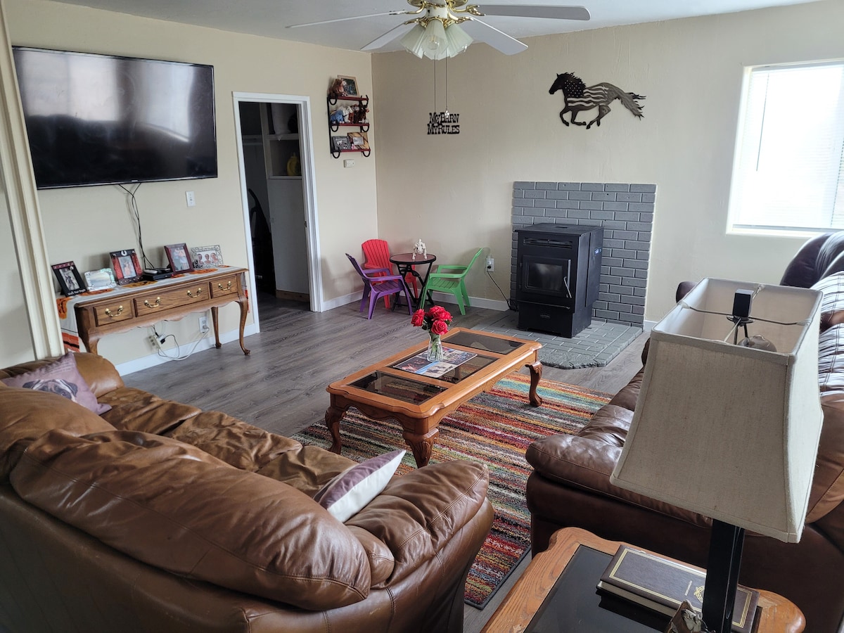 Pihenj egy működő mini-ranch békében, ahol a csirkék, tücskök, békák és baglyok hangja elhallgattatja az elmédet. A Sunset Ranch elég messze van a város zsúfoltságától ahhoz, hogy élvezhesd a legbriliánsabb csillagos égboltot a fedélzetről, vagy egy rövid sétát tehetsz az ingatlanunk tetejére, és nézd a naplementét a Klamath-tó felett! A Hwy 97 mellett található szálláshely mindössze 5 percre található az Oregon Tech és a Sky Lakes Medical Center épületétől. Klamath Falls belvárosa mindössze 8 percre található.