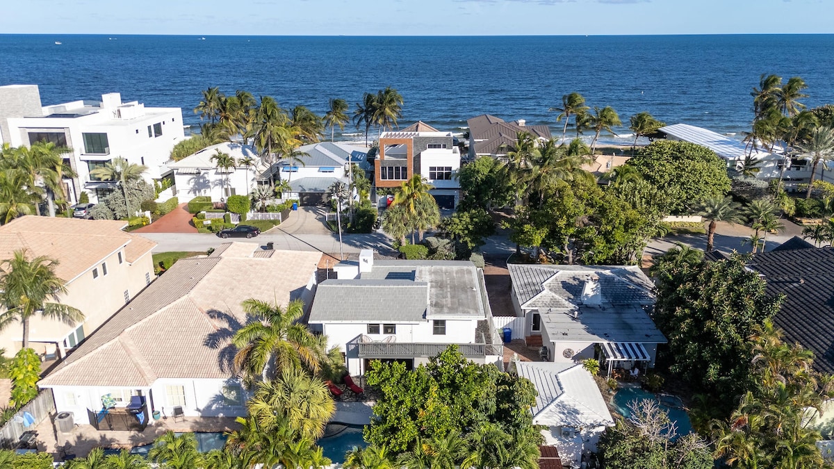 Tágas 3 hálószobás/3,5 fürdőszobás nyaraló Fort Lauderdale-ben fűtött medencével, tetőterasszal, zsinórfényekkel és cornhole-lal, gázgrillel és árnyékos szabadtéri étkezővel. Nagy fürdőszobák zuhanyzóval. Saroktelek a strand, a Las Olas, üzletek, bárok és éttermek közelében. Ideális családbarát szálláshely a kényelmet és szórakozást kereső csoportoknak a napsütötte Fort Lauderdale-ben, nagyszerű beltéri és kültéri élettel, valamint gyors Wi-Fi-vel a munkához vagy a streaminghez. Nagyszerű a télen délre költözőknek, a távolról dolgozóknak, hétvégi kiruccanásokhoz, dél-floridai nyaralásokhoz!