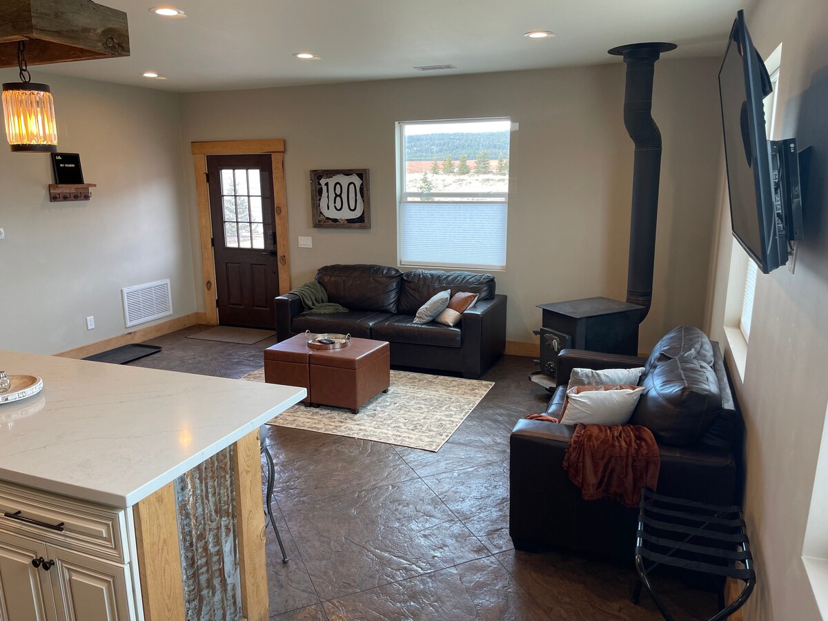 Welcome to your guest house getaway for two. A perfect place to begin your adventures. We have thoughtfully created a clean, cozy home that complements our mountain vibe. The guest house is 100% private with a kitchen equipped with all the comforts of home, a beautiful bathroom with a walk-in glass shower. The space is perfect for relaxing with a glass of wine, drinking cocoa by the gas fireplace, watching the snow fall, or reading a book in the hammock in your private outdoor space.