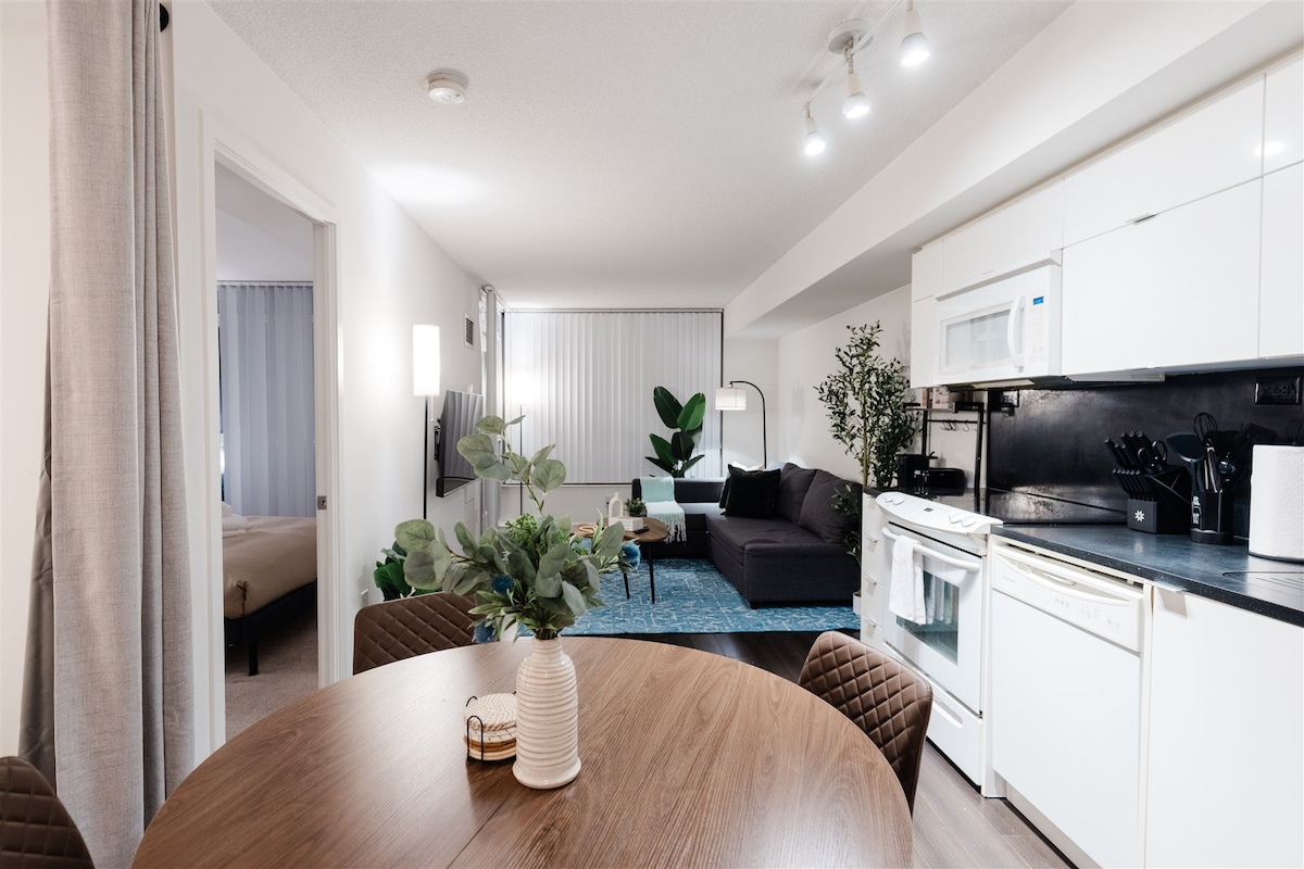Üdvözlünk a Fort York Flatben! Ezt a 2 hálószobás, 1 fürdőszobás helyet átgondoltan újították fel a modern és a kortárs dekoráció keverékével, hogy pihentető, előkelő helyet hozzon létre, ahol pihenhetsz, miközben mindent élvezhetsz, amit Toronto belvárosa kínál. A bejárati ajtóknál található elhelyezkedésünk és intelligens zárható dobozunk minden eddiginél egyszerűbbé teszi a bejutást, nem kell aggódnod a recepció személyzete miatt, vagy a liftekre várva.