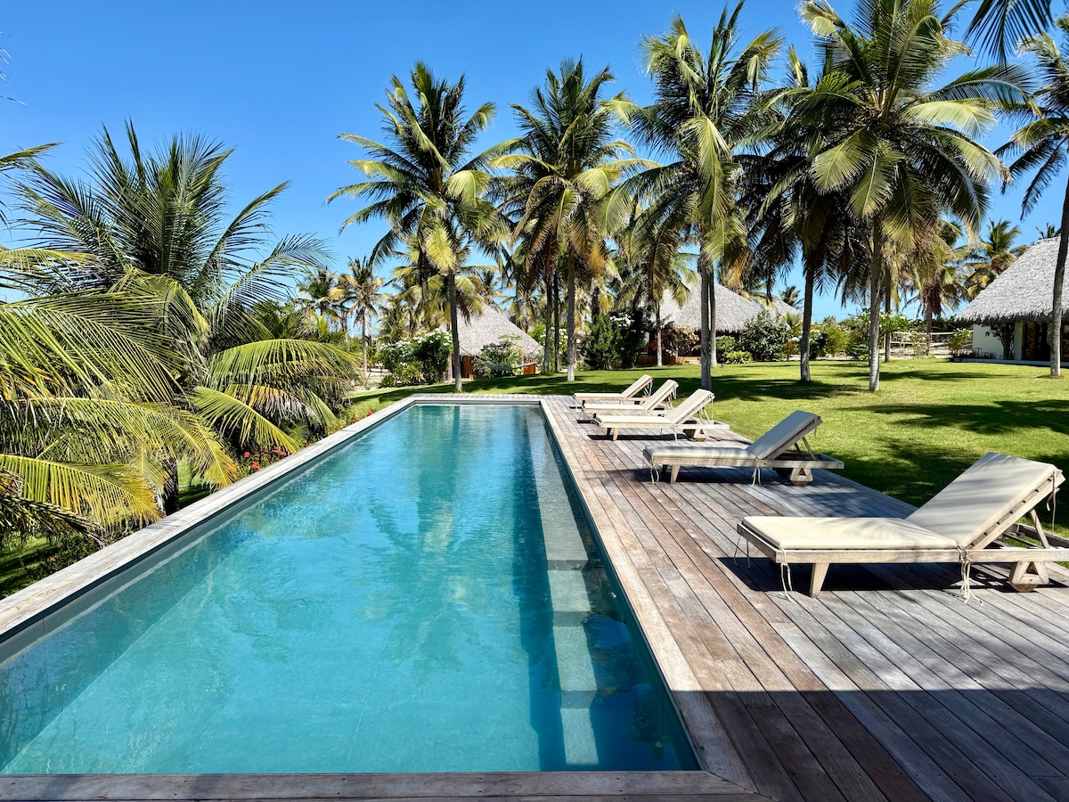 Élj át felejthetetlen napokat Fortimban! Házunk mindössze 300 méterre van a strandtól, ahol a Jaguaribe folyó találkozik a tengerrel, a természetben. Pihenj az exkluzív fa pezsgőfürdőkben, élvezd az úszómedencét, a kertet és a grillezést. Ébredj egy finom házi reggelire, és élvezd a 4 légkondicionált szoba, a Wi-Fi, az edzőterem és a bőséges parkoló kényelmét. Elkötelezett csapatunk minden részletre odafigyel, hogy egyedi élményben legyen részed! 🌴🍃