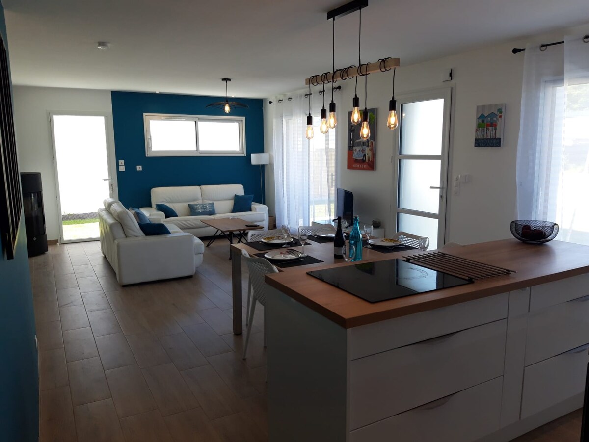 Csendes természetben, óceánra néző kilátás, 300 méterre a Cap Coz strandtól, imádnivaló, világos kendő, nagyon kényelmes, 60 m2 fenyőpadlóval, szeretettel és gondossággal elrendezve. Nappali puha kanapéval, 2 ottománnal, jól felszerelt konyha (főzés, LV, hűtőszekrény, fagyasztó, sütő, mikrohullámú sütő, vízforraló, kenyérpirító, simítókő), fatüzelésű kályha. Nagy egyágyas hálószoba, kiváló TV-ágyak, 1 140X190, 2 90X190, babaágy kérésre, fürdőszoba nagy zuhanyzóval, mosdó, vécé. Terasz bútorokkal. 800 m2-es kert közös használatú.