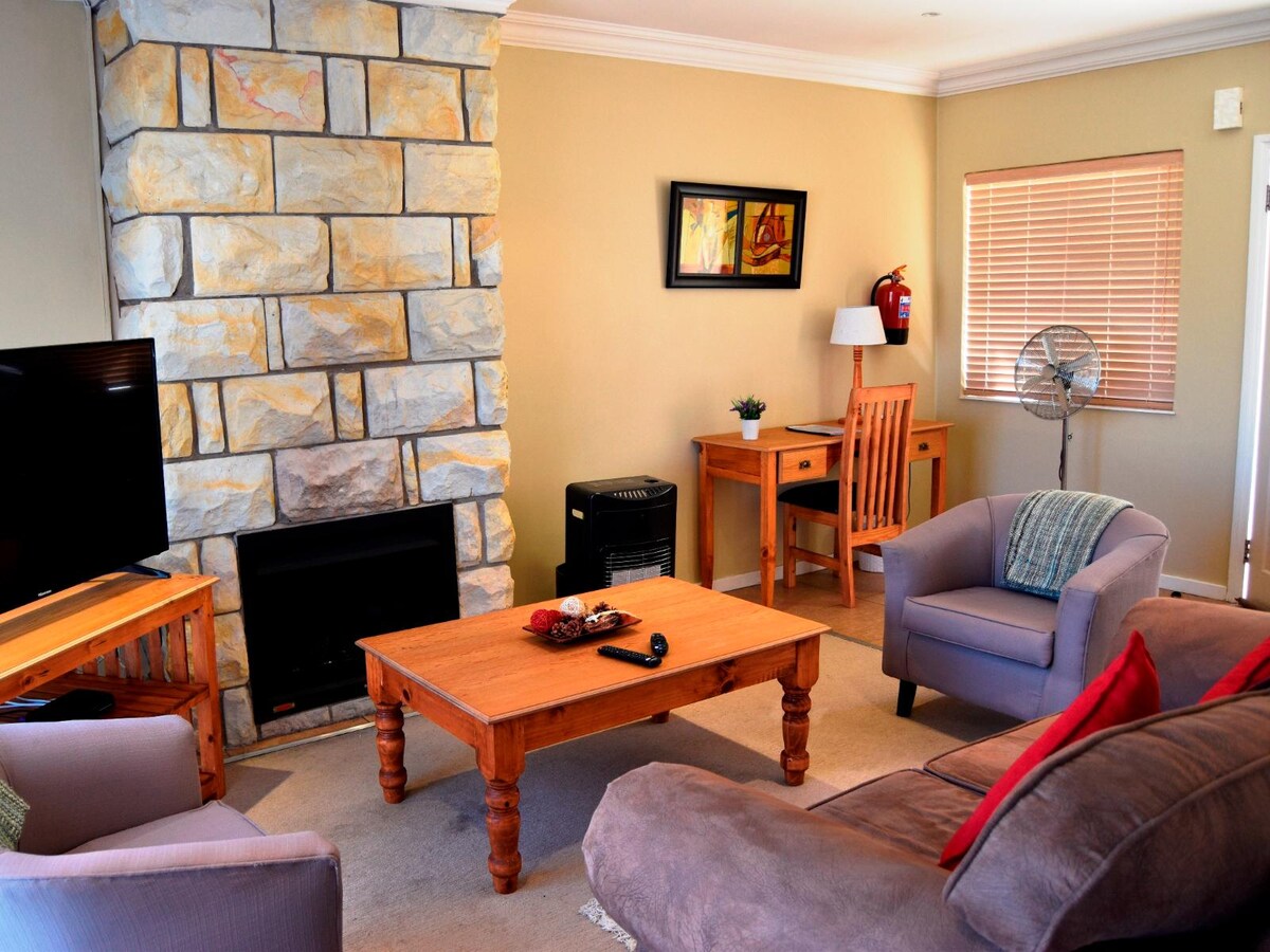 Ez a kerekesszékkel használható egységünk. Ez egy nyitott terű egység, amelyben a hálószoba, a nappali és a konyha is a hegyekre néz. Bent van egy kandalló a hideg téli hónapokra, és kint van egy szép braai a saját kertedben. Ez a lakás csak egy párnak alkalmas (csecsemők vagy gyermekek nem szállhatnak meg itt). Hosszabb távú foglalási lehetőségek is elérhetők kedvezményes áron.
