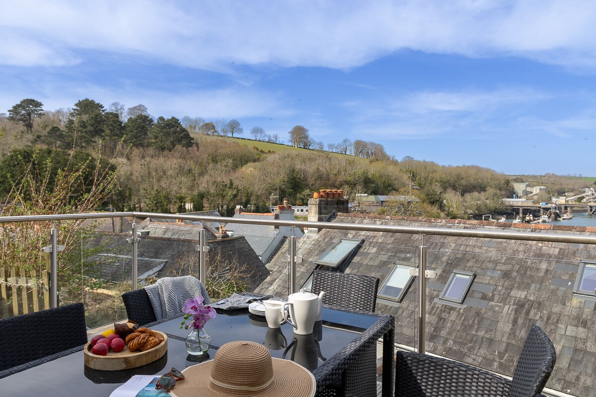 Nevada - Stílusos Fowey Townhouse kilátással a kikötőre