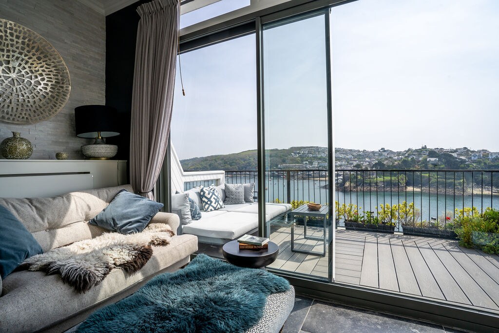 Beautifully refurbished townhouse with stunning sea views on the Esplanade in vibrant Fowey, a short walk to fabulous restaurants, shops & beach . 3 double bedrooms including luxury master bedroom with ensuite, additional family bathroom with roll top bath and shower cubicle, spacious lounge , dining room, kitchen with range cooker & dishwasher, utility room, ground flr wc. Private, furnished decked sun trap patio and paved small front and rear courtyards. Quality furniture, linen and art work