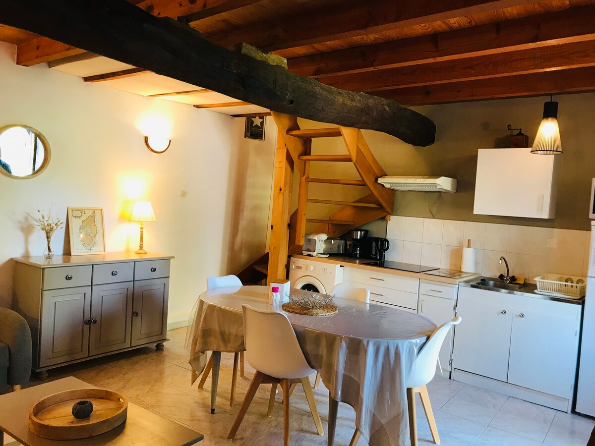 Appartement sur 2 niveaux situé dans l’ancien quartier Pisan de la Haute ville de Bonifacio. Un 1er escalier en pierre vous conduit à la pièce à vivre, cuisine équipée de lave vaisselle, lave linge et sèche linge. Un 2ème escalier en bois plus étroit, vous amène à la chambre avec petit dressing et salle de bain, wc, bidet, lavabos et petite baignoire sabot. La terrasse est dans le prolongement de la chambre avec une superbe vue sur la Sardaigne. Deux chaises longues, parasols, table et chaises.