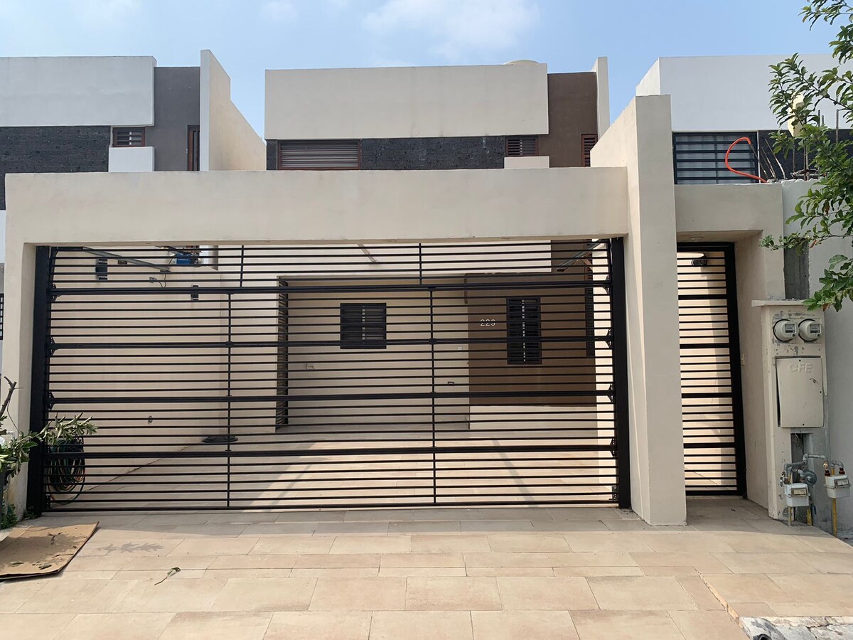 Teljes hely a Colonia Almeria Privada 7 területén. Nagyon közel a repülőtérhez és Apodaca ipari területéhez. A második emeleten 3 hálószoba van. Az első emeleten található a nappali/étkező és a konyha. The reamaras has TV with Netflix, Minisplit frio/heat and simple tubular closet