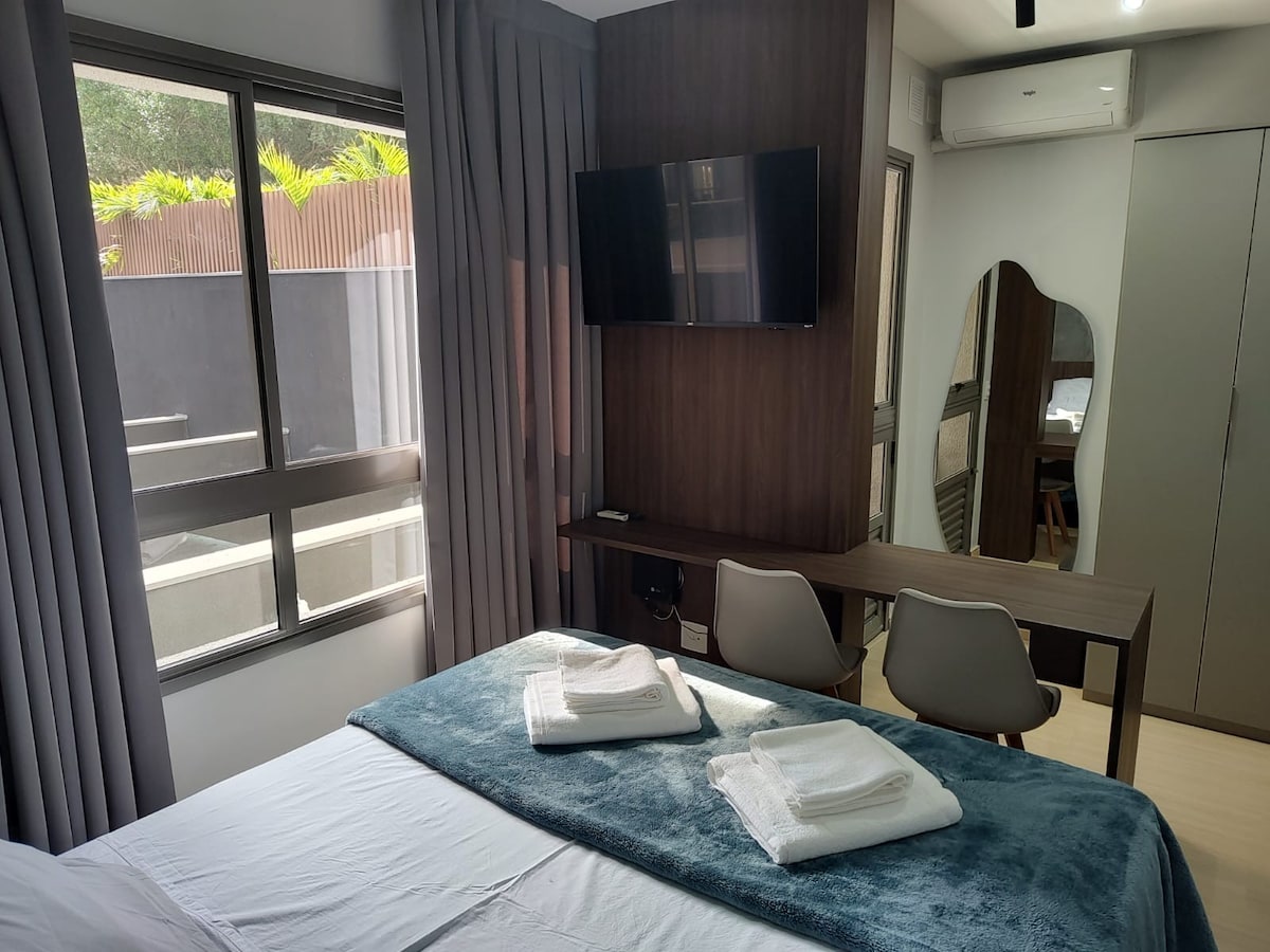 Studio with vacancy, Air conditioning, 25m , 10th floor with a amazing view on the terasz to the Jockey Club and Marginal Pinheiros. Tágas és csendes környezetet kínál. A Butantã állomástól 400 méterre található a város fontos pontjai rendkívül könnyen megközelíthetők . Eldorado bevásárlóközpont (1,2 km) Faria lima (2 km) Pinheiros (1,7 km) USP (1,1 km) Butantã metróállomás (400 m) Jockey Club (400 m) Albert Einstein Kórház (4,5 km) Morumbis (4 km) Acadepol (1,5 km) 24 órás portaszolgálat.