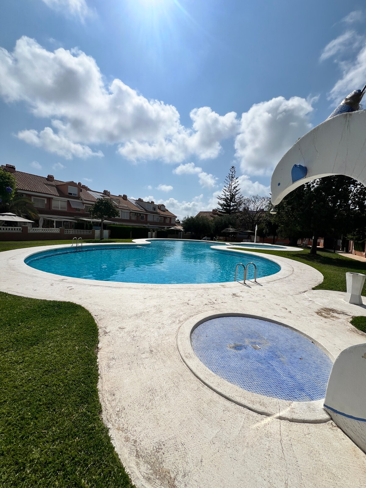 A szálláshely közvetlenül Alicante egyik legszebb homokos strandján található San Juan Playa és Muchavista között. Egy zöldterületekkel rendelkező városiasodásban tágas úszómedencék gyermekek és felnőttek számára, teniszpályák és többfunkciós udvar, valamint szabadtéri játszótér. Ideális családok és barátok számára. • A medencék nem fűtöttek, de egész évben nyitva vannak A közvetlen közelben éttermek, szupermarketek, gyógyszertár és Alicante-Benidorm villamos található.