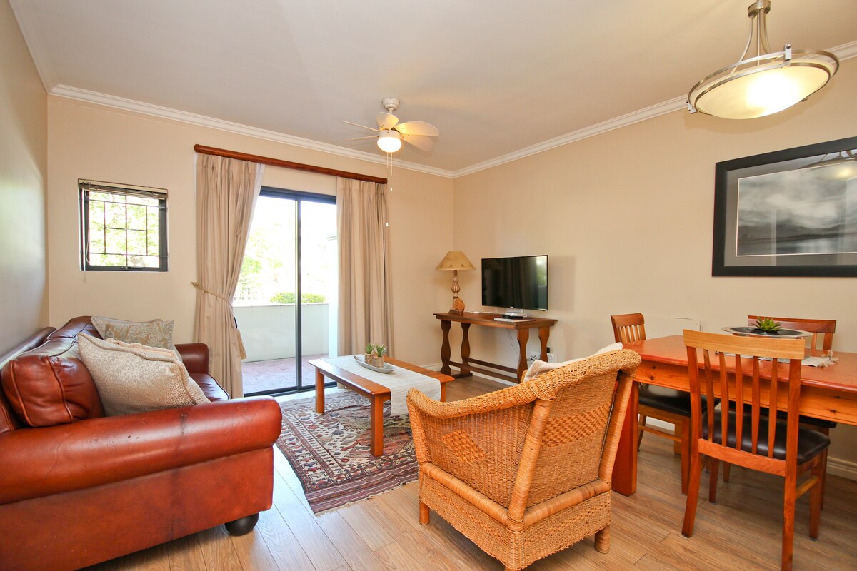 A Franschhoek-hegység alatt található biztonságos birtokon Tágas, 2 hálószobás, mindkettő saját fürdőszobával rendelkezik. Gyönyörű, nagy konyha saját mosogatóval. Légkondicionált Saját terasz/erkély braai és hegyekre nyíló kilátással. Egy vagy két pár nagyon kényelmesen elfér. 2 medence áll rendelkezésre a birtokon, étterem, bár, gyógyfürdő. Élvezd a könnyű hozzáférést mindenhez a faluban erről a központi elhelyezkedésű helyről.