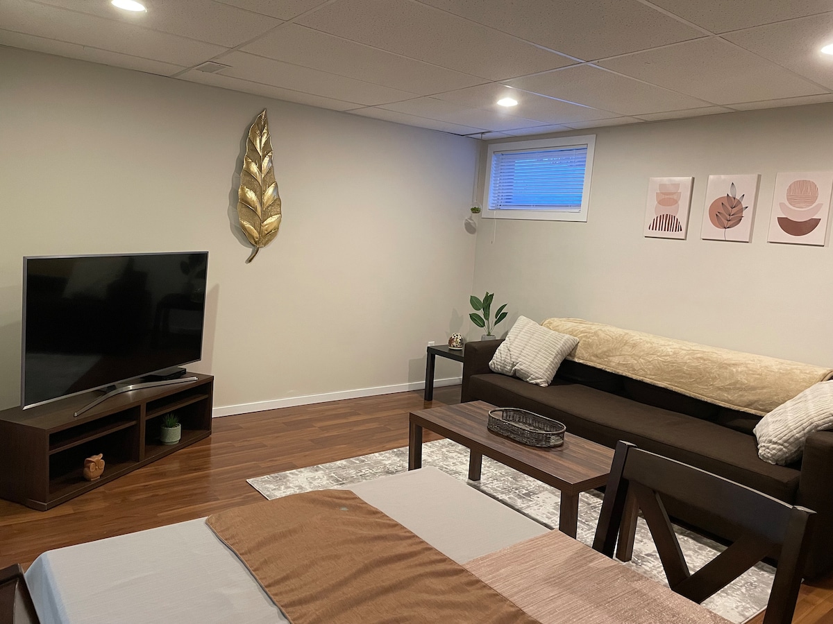 Dőlj hátra, és lazíts ebben a vadonatúj, nyugodt, stílusos, teljesen berendezett, 2 hálószobás, alsó szintű executive lakosztályban. Prince George egyik legújabb és legbiztonságosabb környékén található lakást sétautak veszik körül, közel a buszközlekedéshez és a vásárlási szolgáltatásokhoz. Minden sport-/rekreációs létesítmény és UNBC 8-15 perc alatt elérhető autóval, valamint Prince George és UHNBC városába. A lakosztály ízlésesen van berendezve, hogy rövid és hosszú távra egyaránt elférjen benne.