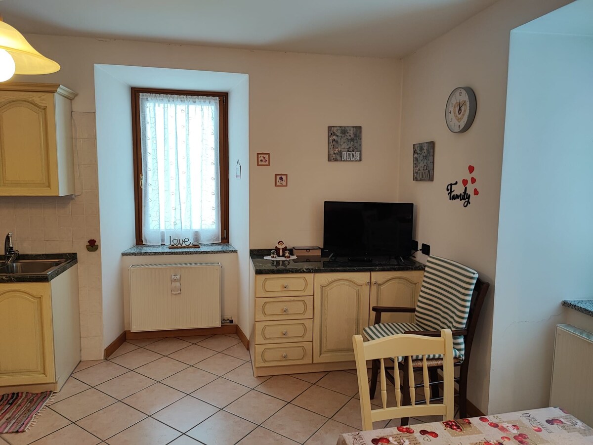 Újonnan felújított lakás, a történelmi központ szélén, Cortina faluban, Vermiglioban, egy csendes környéken, közvetlen kapcsolatban a természettel, kiváló helyszín sífutáshoz, alpesi síeléshez, síhegymászáshoz, túrázáshoz és hegyi kerékpározáshoz A lakás minden kényelemmel, Wi-Fi-vel, televízióval, mosógéppel, 4 főzőlapos elektromos tűzhellyel, hűtőszekrénnyel és fagyasztóval van felszerelve. A téli szezon ára tartalmazza a lepedők, párnahuzatok és törölközők biztosítását.