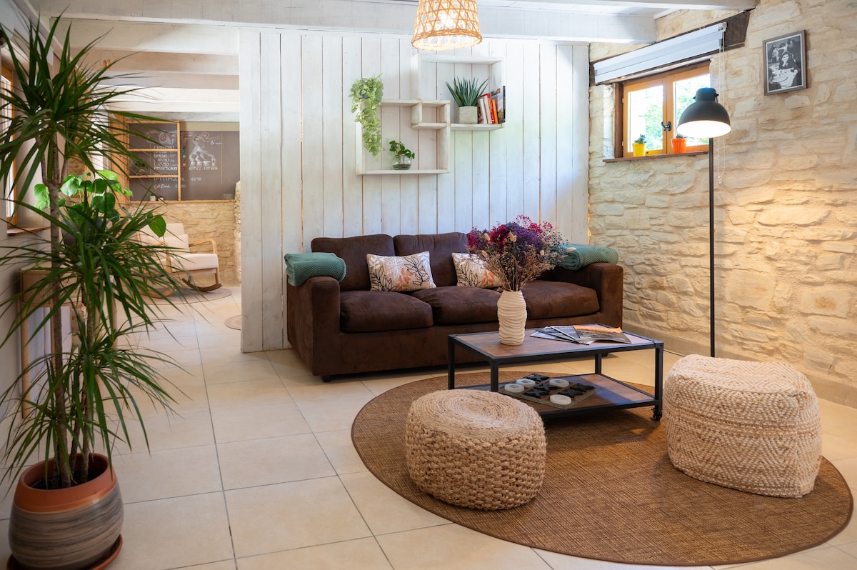 Felújított kőpajta 2 félig különálló kisházban, amelyet egy nagy fedett kert választ el egymástól. Ez egy hangulatos kisház, amit kínálok neked, és ideális hely a vidéki pihenésre a farmon. Békés fedett terasz saját jacuzzival minden kisházban (kisgyermekek számára nem engedélyezett) Ideális 4 személy vagy pár számára Kellemes kilátás, nagyon csendes helyen. Számos lehetséges tevékenység: kenu, séták Gabaresben a Dordogne-on, kastélyok, falvak, barlangok, múzeumok, éttermek, bolhapiacok stb.