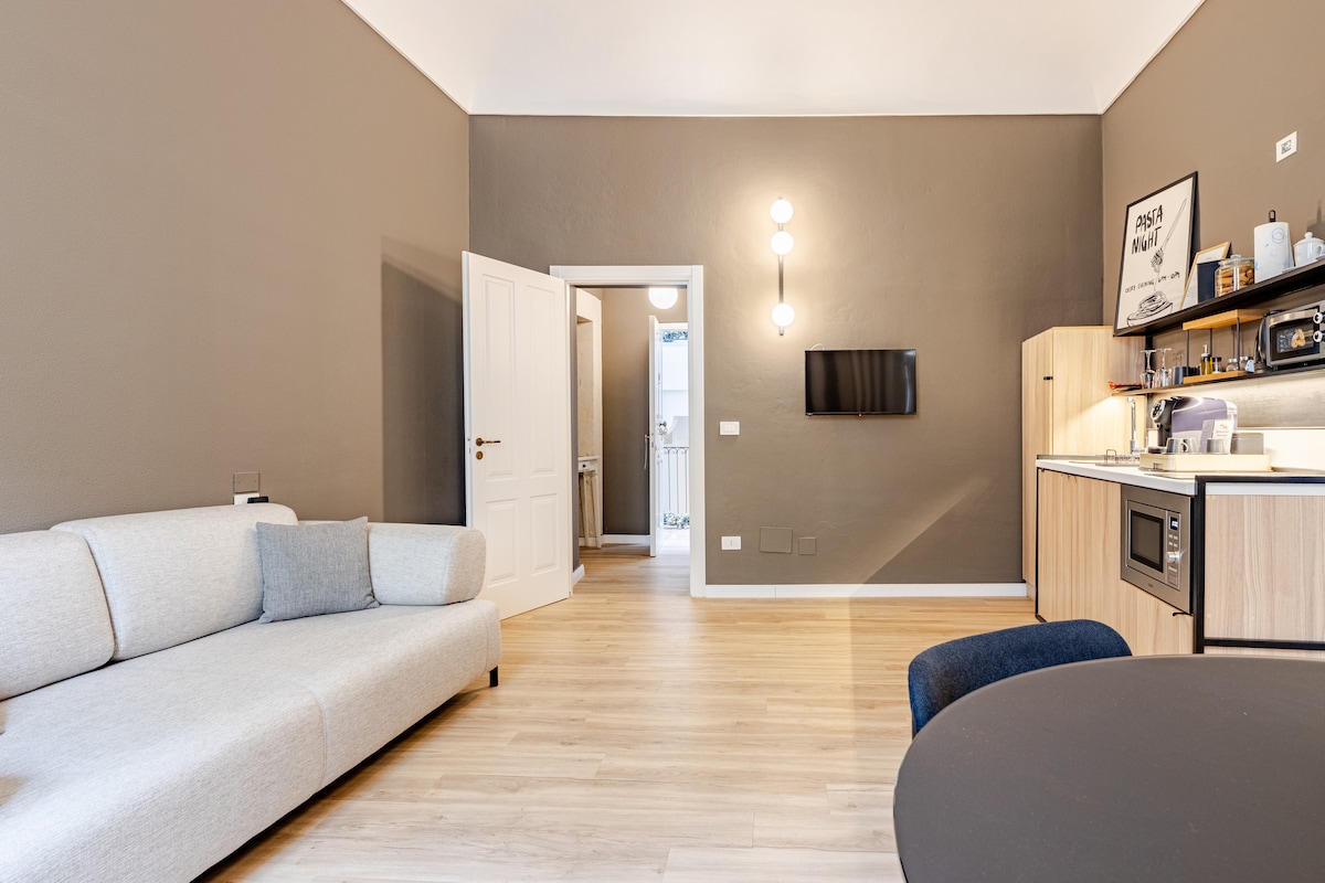 Élvezd a stílusos élményt ezen a belvárosi szálláshelyen, amely egy kőhajításnyira van a tengertől. A lakás egy gyönyörű háromemeletes barokk épületben található, nincs lift, és a lakás a harmadik emeleten van. A lakás egy nagy konyhából áll, kanapéággyal és étkezőasztallal, egy hálószobából, amelyben egy kétszemélyes ágy és egy fürdőkád található, valamint egy saját fürdőszobából, amelyben zuhanyzó van. Két erkély van kültéri bútorokkal, kilátással az sugárútra
