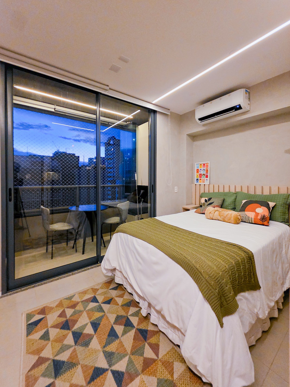 Pihenj ezen a csendes, stílusos helyen. Meu Ap a kényelmet részesíti előnyben, pihenés egy forgalmas nap után a metropoliszban. Ideális 2 főig, standard Queen Hotel ággyal, légkondicionálóval, 250 MB-os internettel, 42"Smart TV-vel; valamint mikrohullámú sütővel, indukciós tűzhellyel, szendvicssütővel, kenyérpirítóval, vízforralóval, kávéfőzővel és mini hűtőszekrénnyel felszerelt konyhával. Kétszemélyes íróasztallal rendelkezik, kényelmes bőrszékekkel. Zajmentes ablakokkal és 100% -ban sötétítőfüggönyökkel fogsz aludni