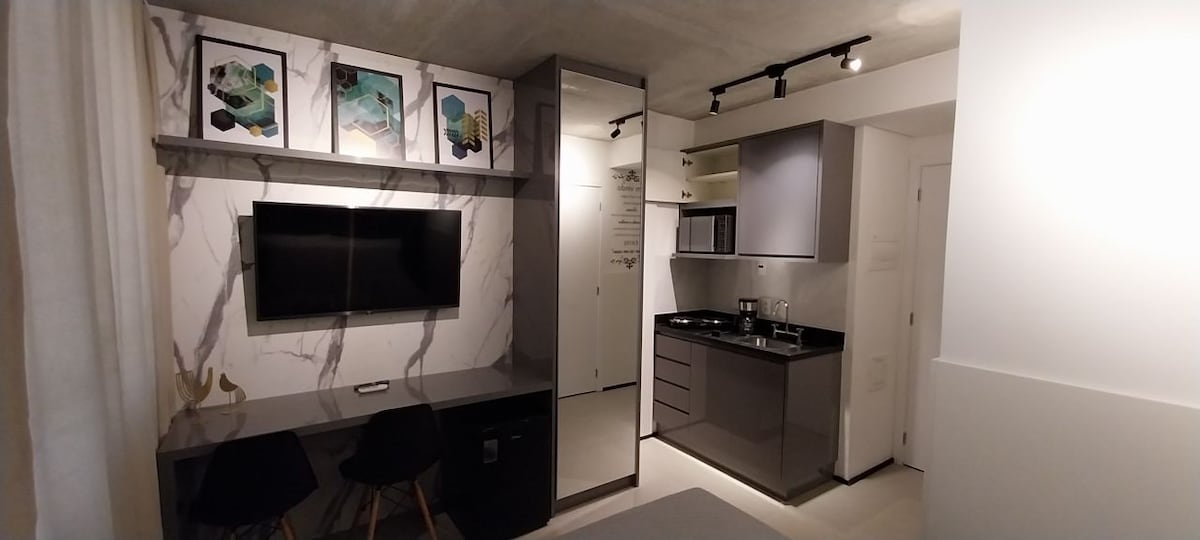 Fogadj vendégeket egy új, otthonos, kényelmes, modern és stílusos stúdióban, amely kevesebb mint egy perc sétára található az üzlettől. Frei Caneca A stúdió a következőkkel rendelkezik: rendkívül kényelmes ágy, erőteljes légkondicionáló, amely gyorsan lehűti az egész helyiséget, Wi-Fi, okostévé kábelcsatornák és streamingalkalmazások széles csomagjával, minden LED-világítással (beleértve a színt a fejtámlán és a fürdőszobában bluetooth-szal és hangdobozzal); teljes konyha, erkély és tetőtéri medence.