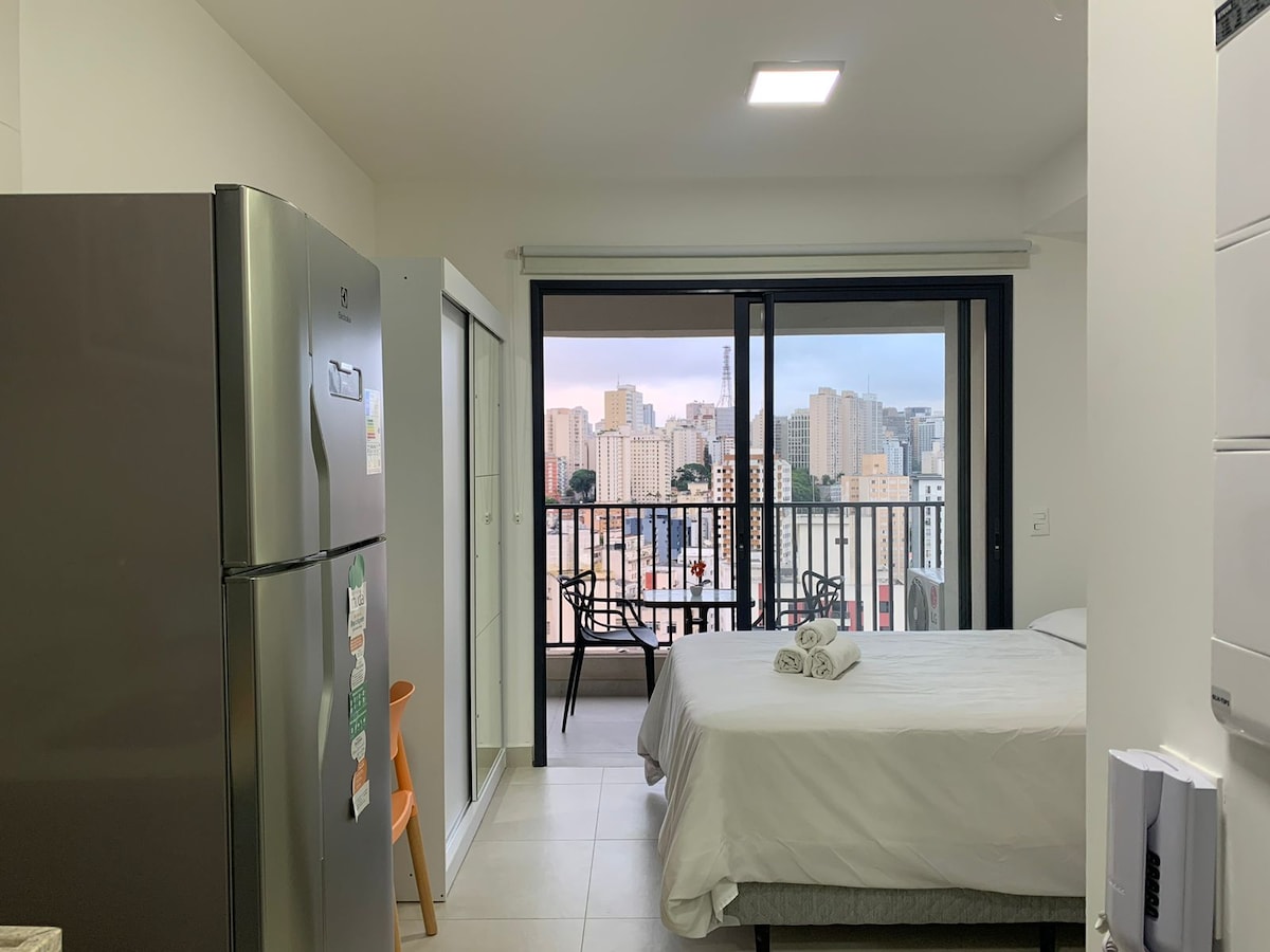 Elbűvölő és otthonos stúdió egy társasházban, amely teljes infrastruktúrával rendelkezik a kikapcsolódáshoz, a pihenéshez és a munkához. Úgy tervezték, hogy kényelmet nyújtson a vendégeknek a foglalások során. Nagyszerű elhelyezkedés, a Frei Caneca bevásárlóközpont mellett, 6 perces sétára a Higienópolis-Mackenzie metróállomástól, 8 percre a Paulista Avenue-tól, közel bárokhoz, éttermekhez, piacokhoz és kórházakhoz.