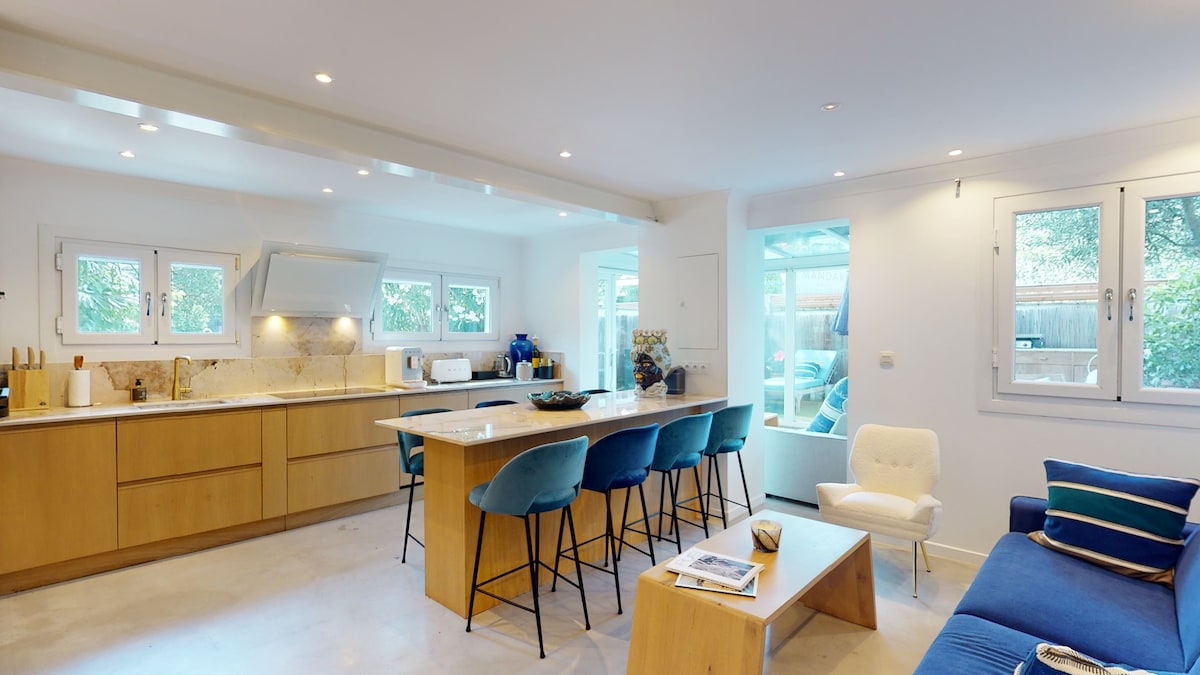 4 csillagos lakás egy tipikus villában, teljesen felújított, 950 méterre a tengertől és a városközponttól, egy lakóövezetben és csendes kerületben Sainte Maxime-ban. - 500 x 300-as privát medence pezsgőfürdővel (spa) - 500 m2-es nagy, erdős kert – Ágynemű és új szállodai ágynemű - Légkondicionálás, Wifi, grill, felszerelt konyha.. A villában 2 lakóegység található, 2 külön bejárattal. Minden lakáshoz saját privát területek tartoznak (medence, gyógyfürdő, konyha, grill stb.).