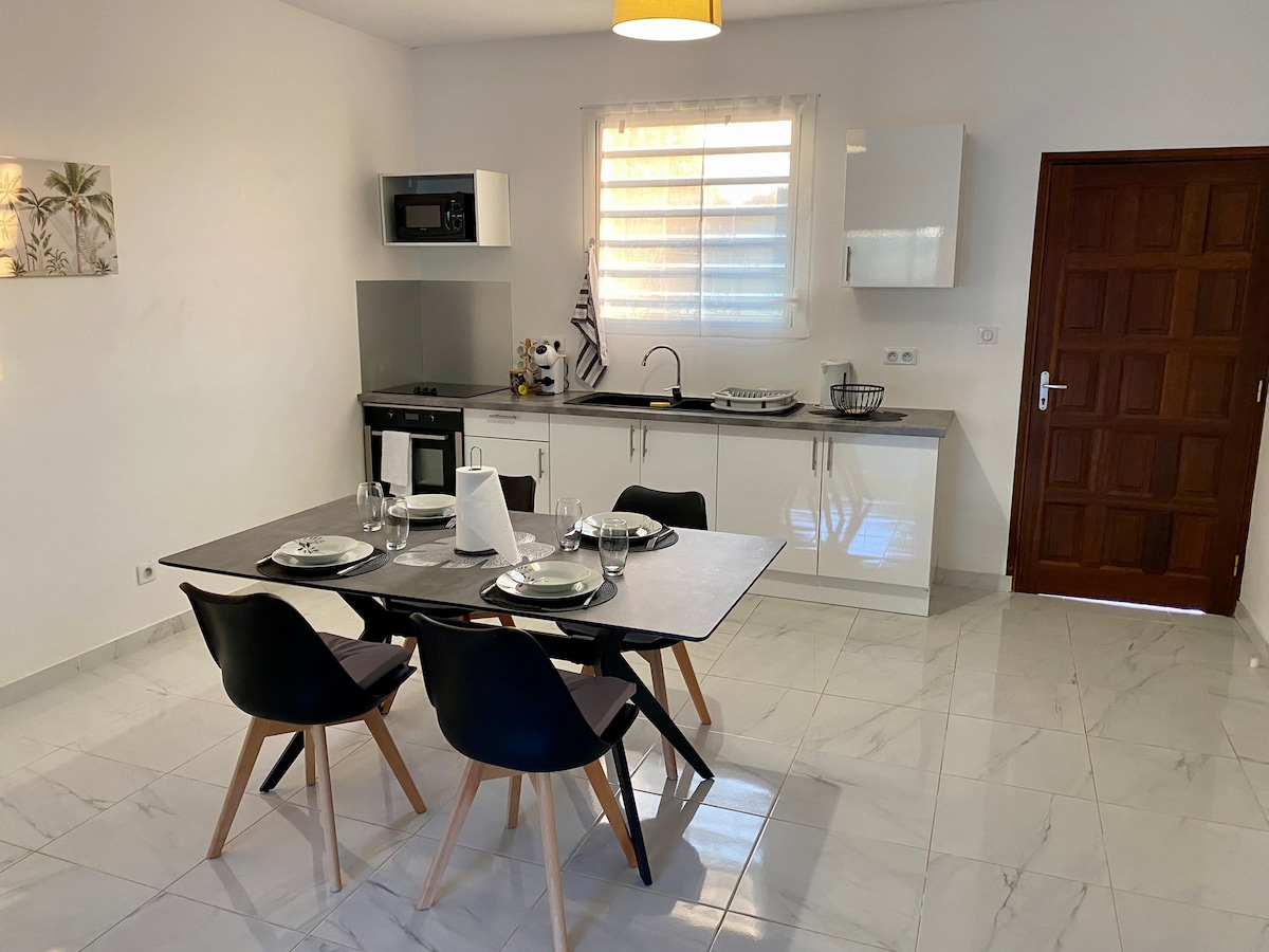Studio situé entre Cayenne et Montjoly, près d'un Centre Commercial. Il bénéficie du calme de la campagne, dans un espace clôturé et sécurisé. Il se compose d'une grande pièce à vivre : coin salon, coin nuit et une kitchenette entièrement équipée. - confort :climatisation, télévision (TNT et satellite), la fibre et la wifi.- Pour la cuisine: réfrigérateur, four électrique et micro-ondes, plaque de cuisson(2 feux) et petit matériel ménager. - Il y a une place de parking. -
