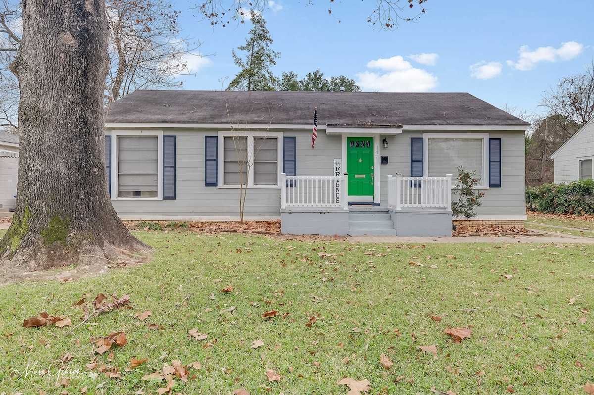 This newly renovated 2000 sq ft home is perfect for a vacation getaway . Guests can lounge by the large brick fireplace with a cup of coffee (from our specialty coffee bar), or head to the back patio to toast smores by the firepit. It sits on a corner lot with mature pecan trees and features a fabulous open concept kitchen/living area. It's 5 blocks from Shreveport’s most upscale shopping /restaurants-2 miles from Brookshires Arena. Great for family trip/business trip/weddings guests-