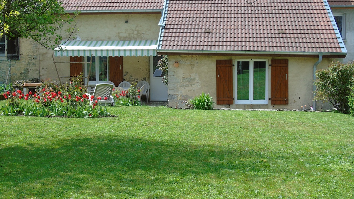 Idéalement situé entre Franche-Comté et Bourgogne, appartement en duplex, comprenant une cuisine équipée, une salle de bain, des toilettes sèches, un salon et une chambre à coucher. Ce logement est situé dans une maison individuelle, entourée d’une propriété d´1,5 hectare, en bord de rivière . Si vous aimez la nature, les grands espaces et la tranquillité de la campagne, n’hésitez plus... Les animaux sont les bienvenus, possibilité d’hébergement et de pâture pour chevaux et Anes.